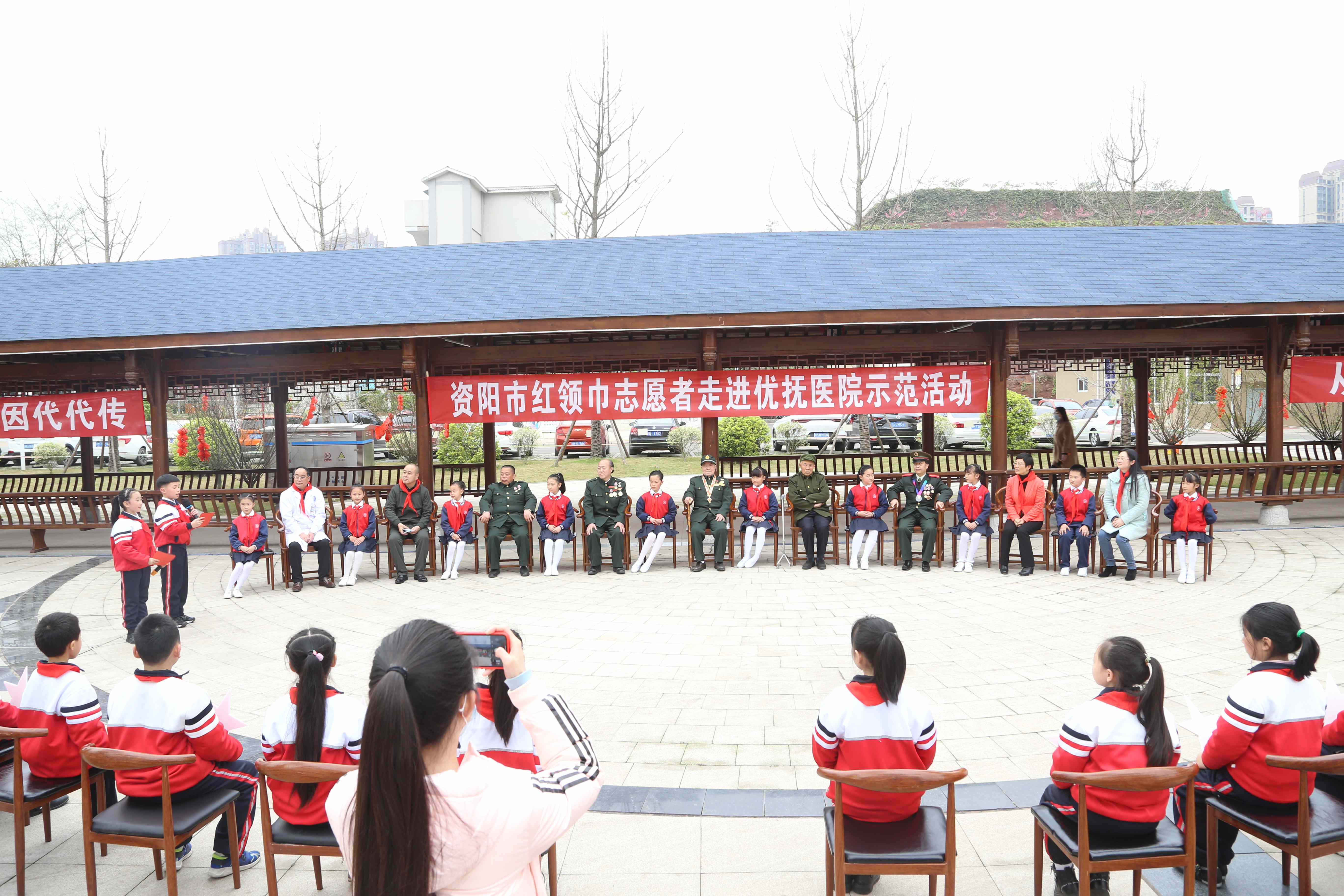 组织红领巾志愿者走进市优抚医院看望老英雄。