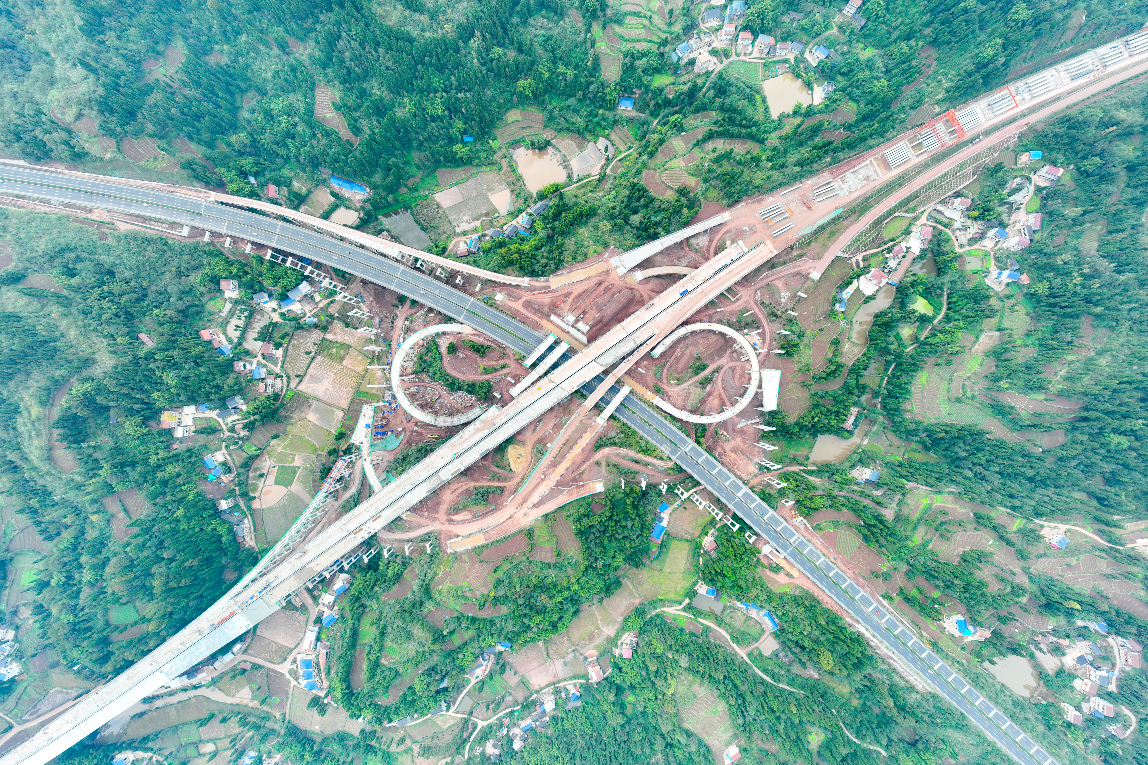 在建设过程中,项目部坚持与时间赛跑,通过不断优化施工工艺、反复进行试验,最终历时52天完成全部高狮枢纽互通涉路工程,创造了近年来四川省高速公路高接高涉路施工最短纪录。