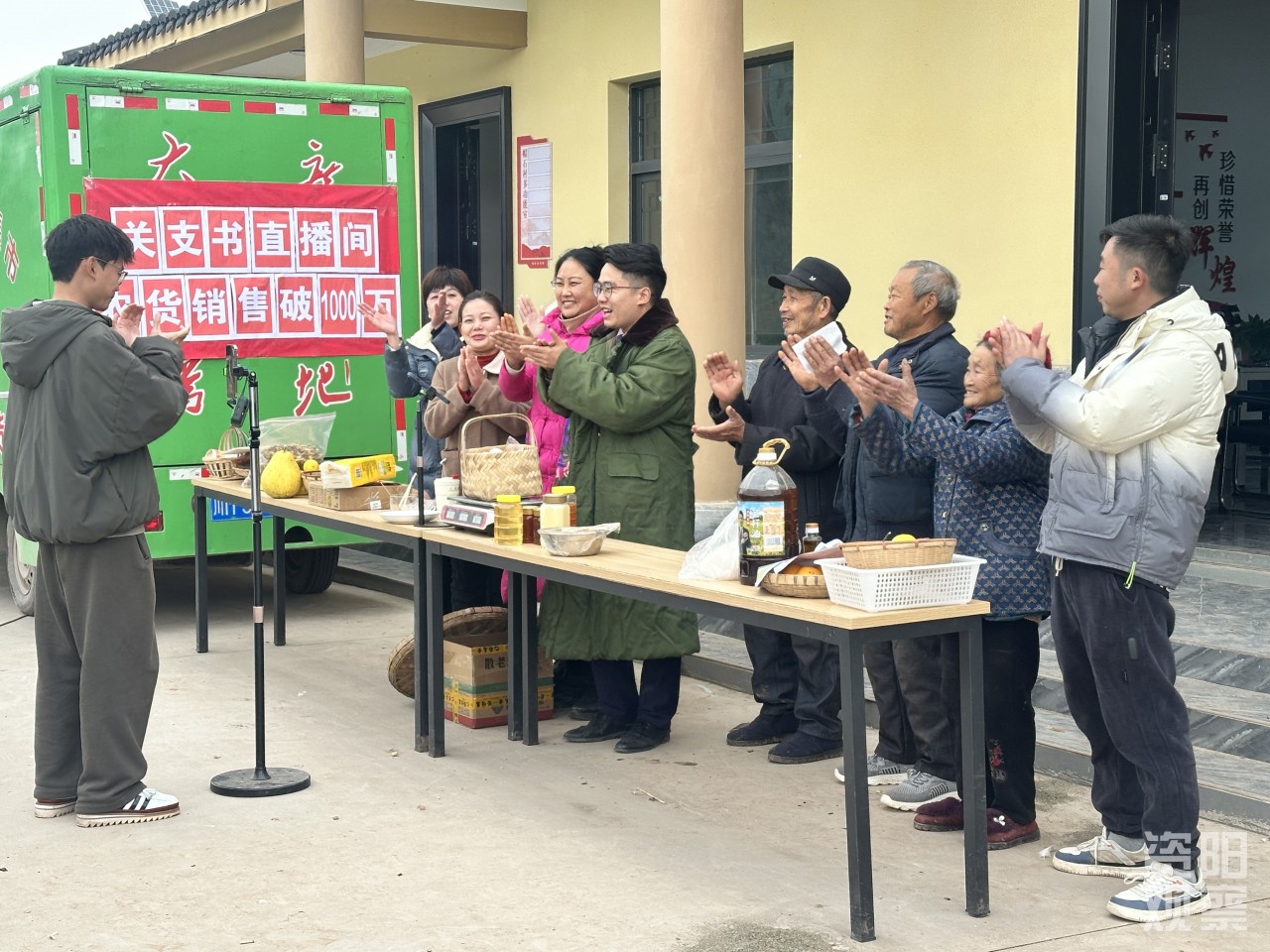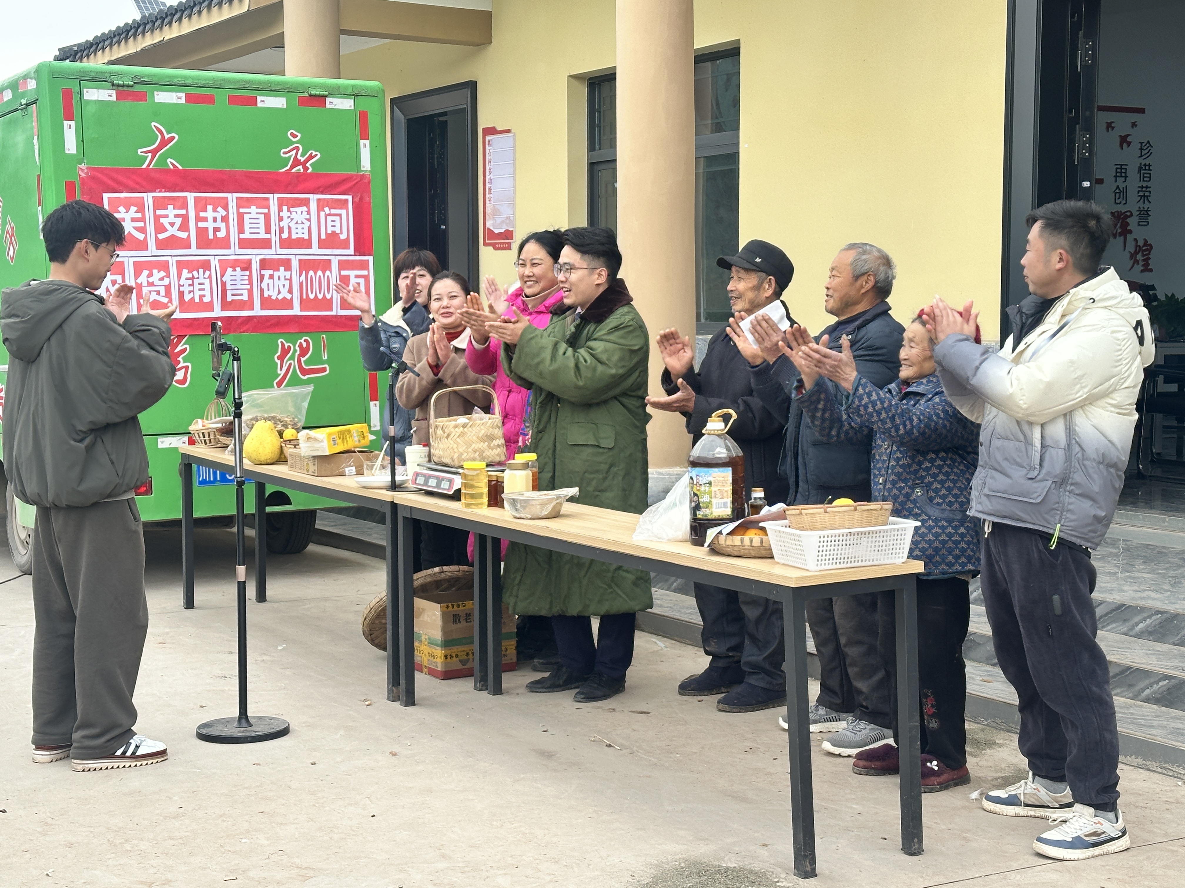 乡亲们拍手庆祝平台销售突破千万元。