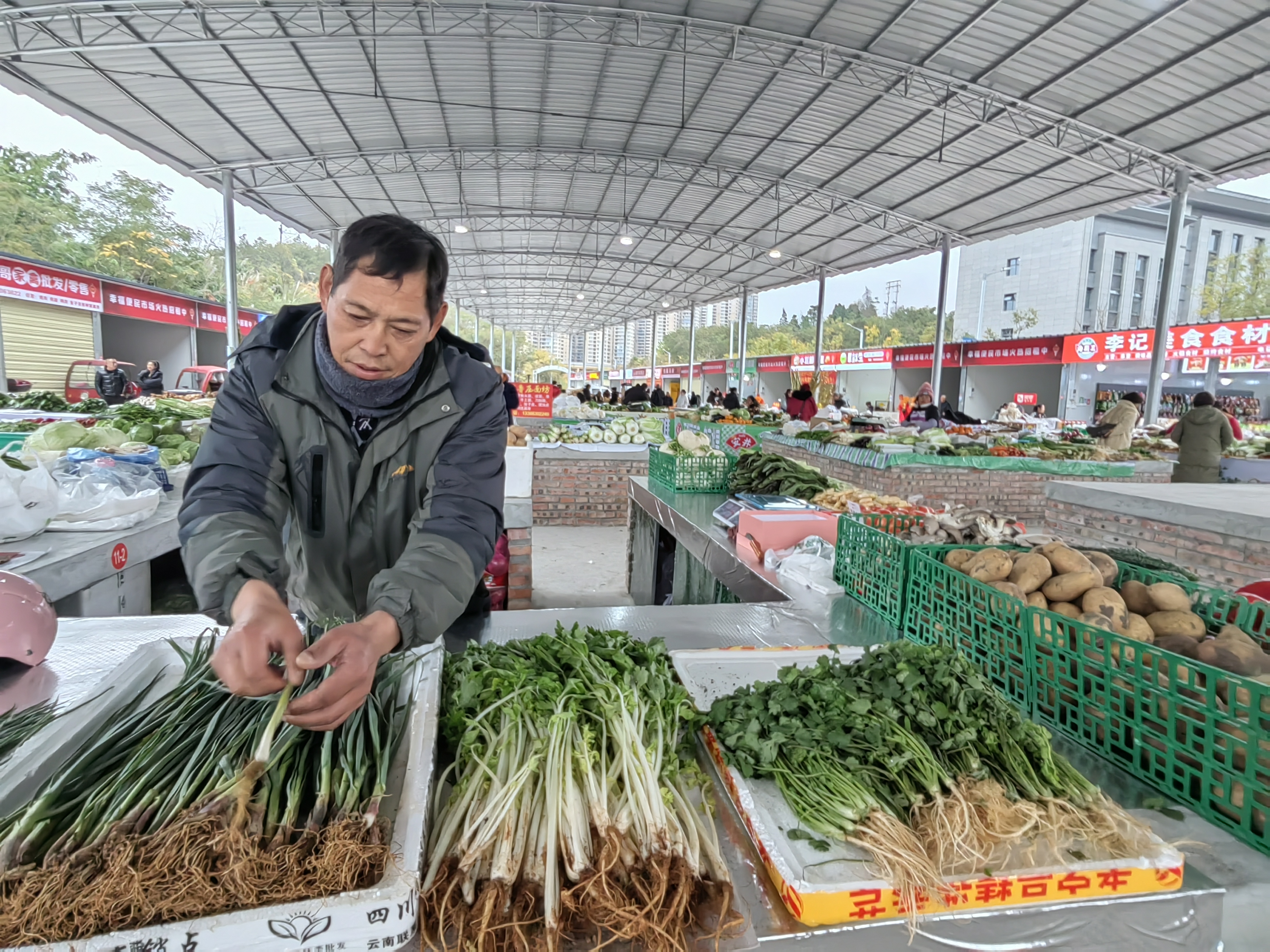 据幸福便民疏导中心管理人员杨壹博介绍,目前中心对首批入驻商贩优惠4个月租金,同时对自产自销的农户和困难群体、残疾人等群体,采取公益性或低偿的方式入驻。中心“云里街市”线上购菜点位正在筹备中,融入该平台后,中心将提供线上线下多渠道方式,方便市民选购。