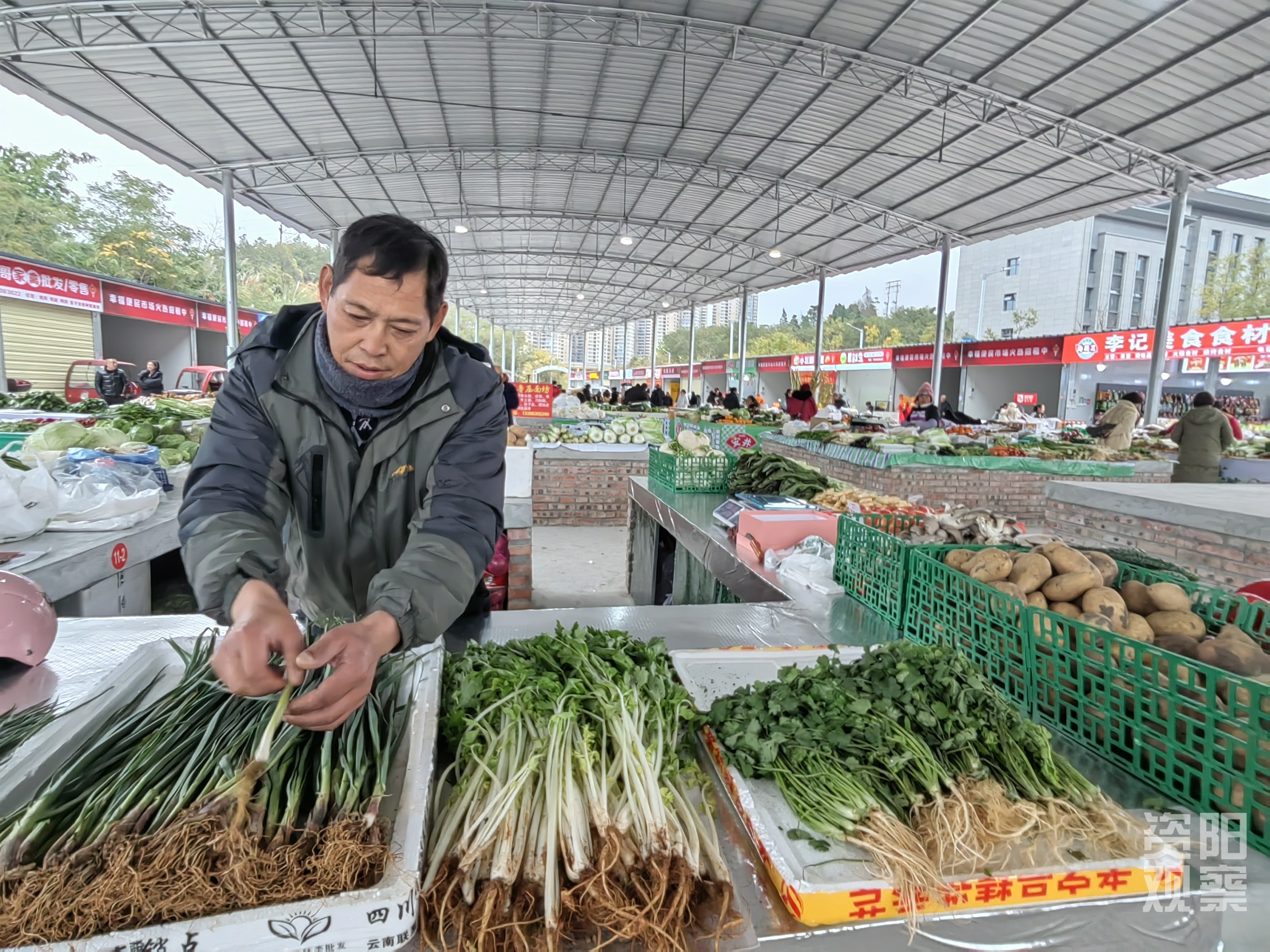 便民市场是城市便民生活圈中的重要组成部分,连接着千家万户。12月12日,位于资阳高新区狮子山街道槐树东路的幸福便民疏导中心正式投用,让群众的“菜篮子”拎出满满幸福感。