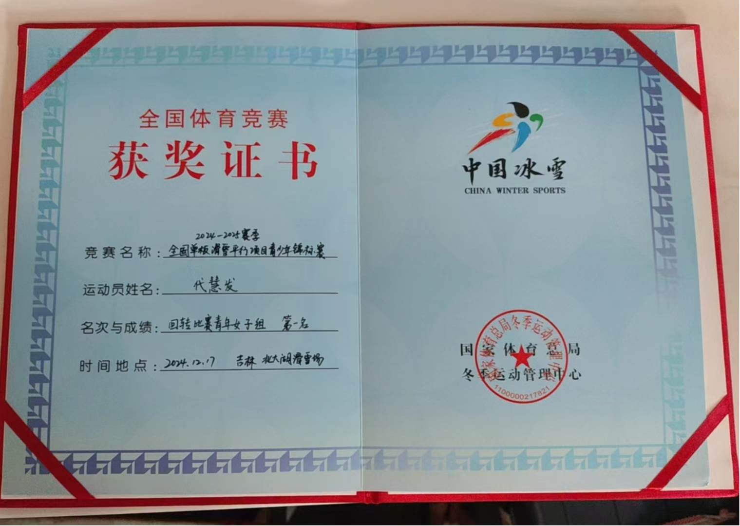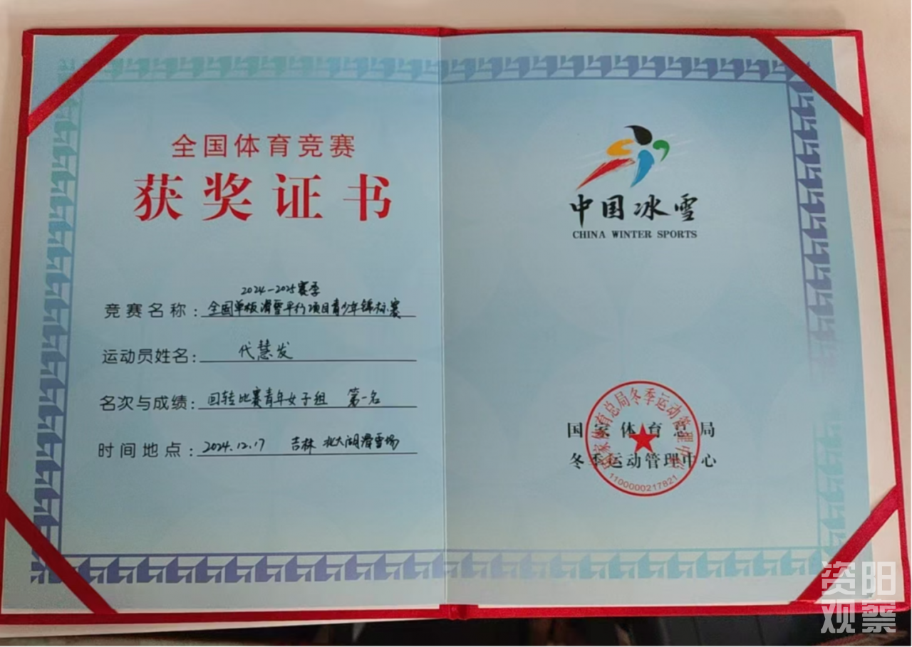 12月13日—17日,2024-2025赛季全国单板滑雪平行项目青少年锦标赛在吉林北大湖滑雪度假区举行。资阳雁江籍运动员代慧发凭借比赛中的完美表现,获得回转比赛青年女子组第一名。