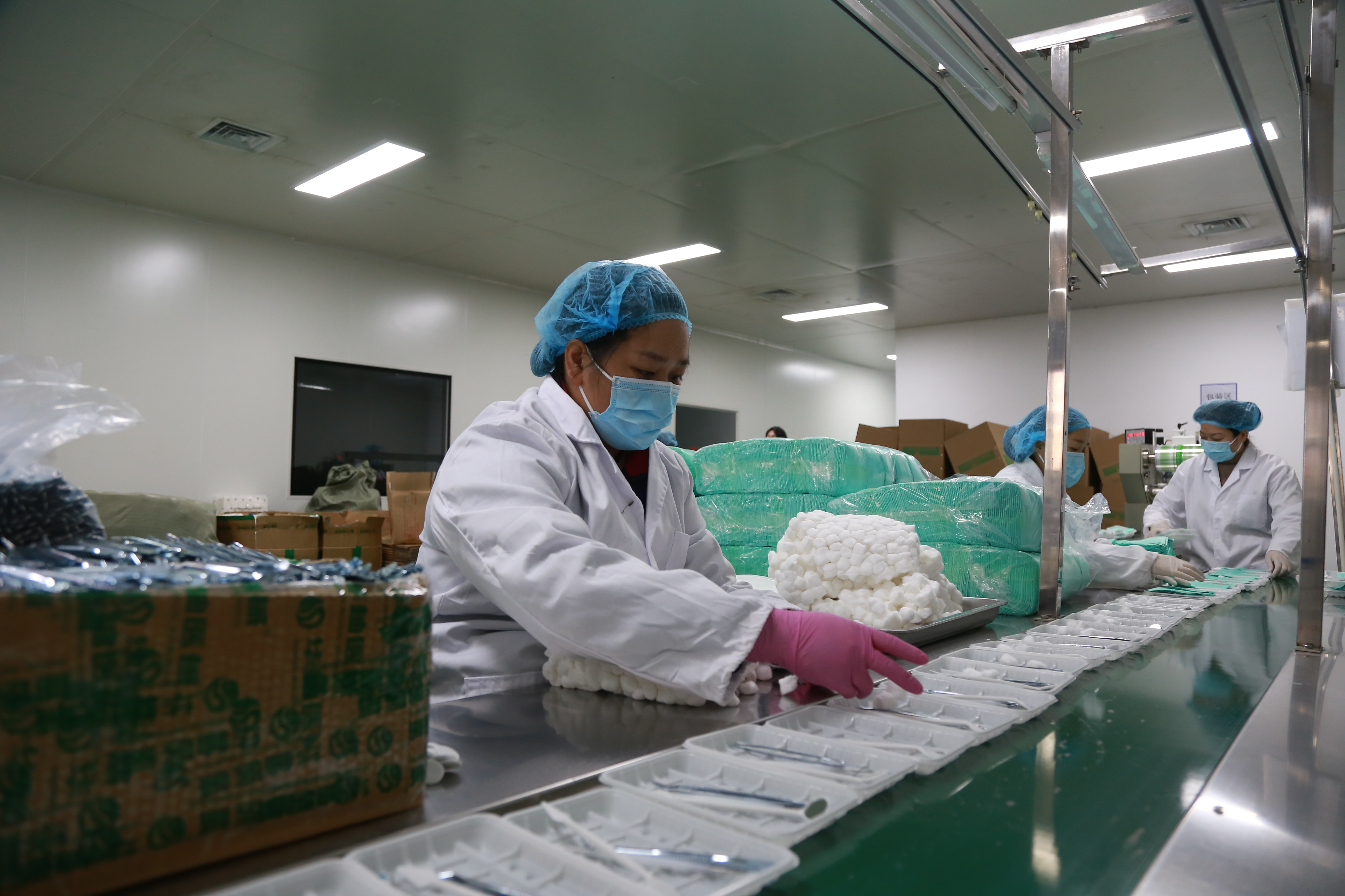 近日,记者走进该园区内的四川华柚医疗器械有限公司,只见一台台设备高速运转,发出有节奏的嗡嗡声,医用托盘、牙用口镜、医用脱脂棉球、牙探针等8个组件被工作人员依次放入生产线,不一会儿一套一次性使用口腔器械盒便生产完成,即将打包发往全国各地。
