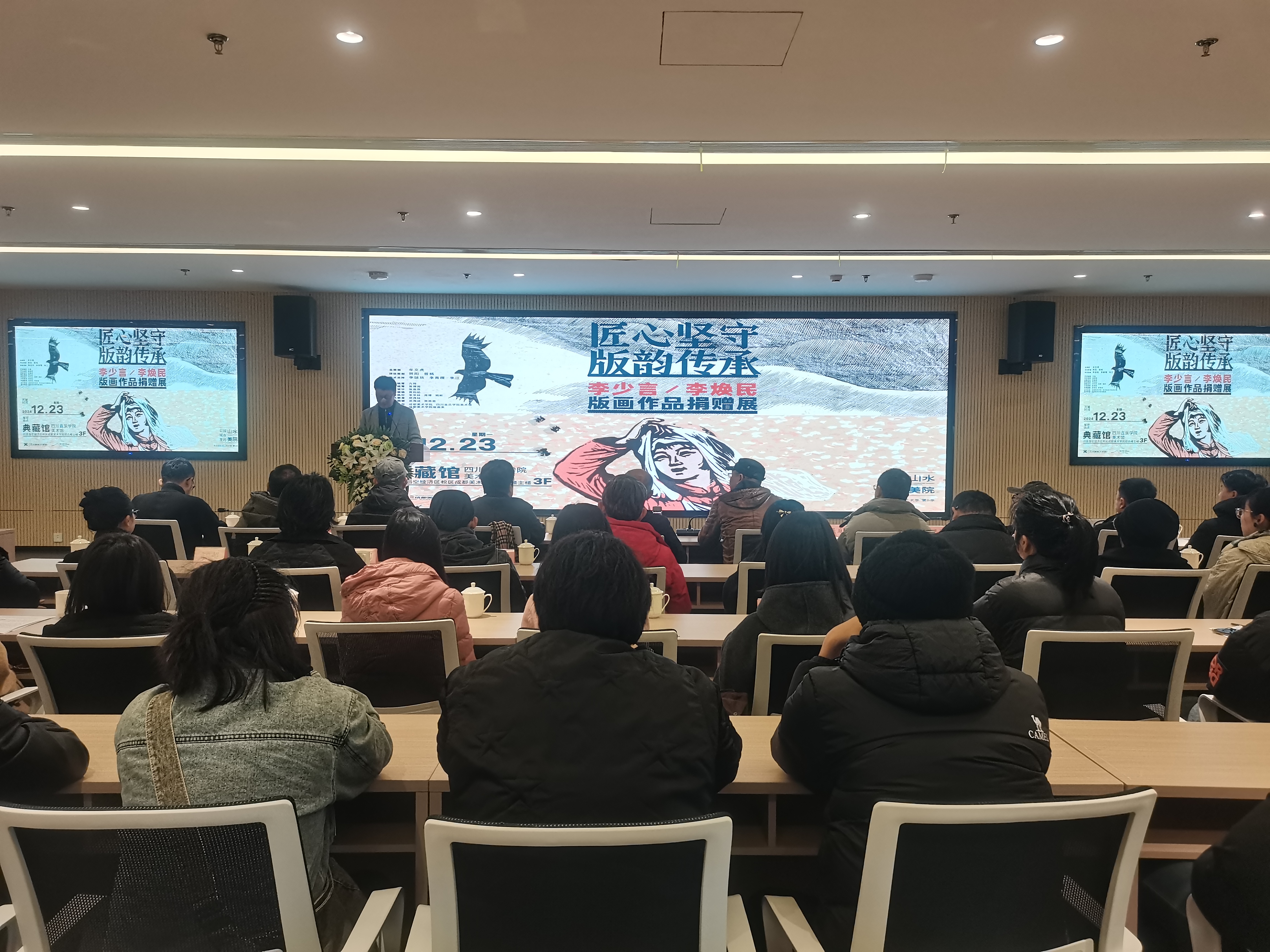 12月23日,“李少言、李焕民版画作品捐赠仪式”暨“匠心坚守 版韵传承──李少言、李焕民版画作品典藏展”在四川音乐学院临空经济区校区美术学院举行。