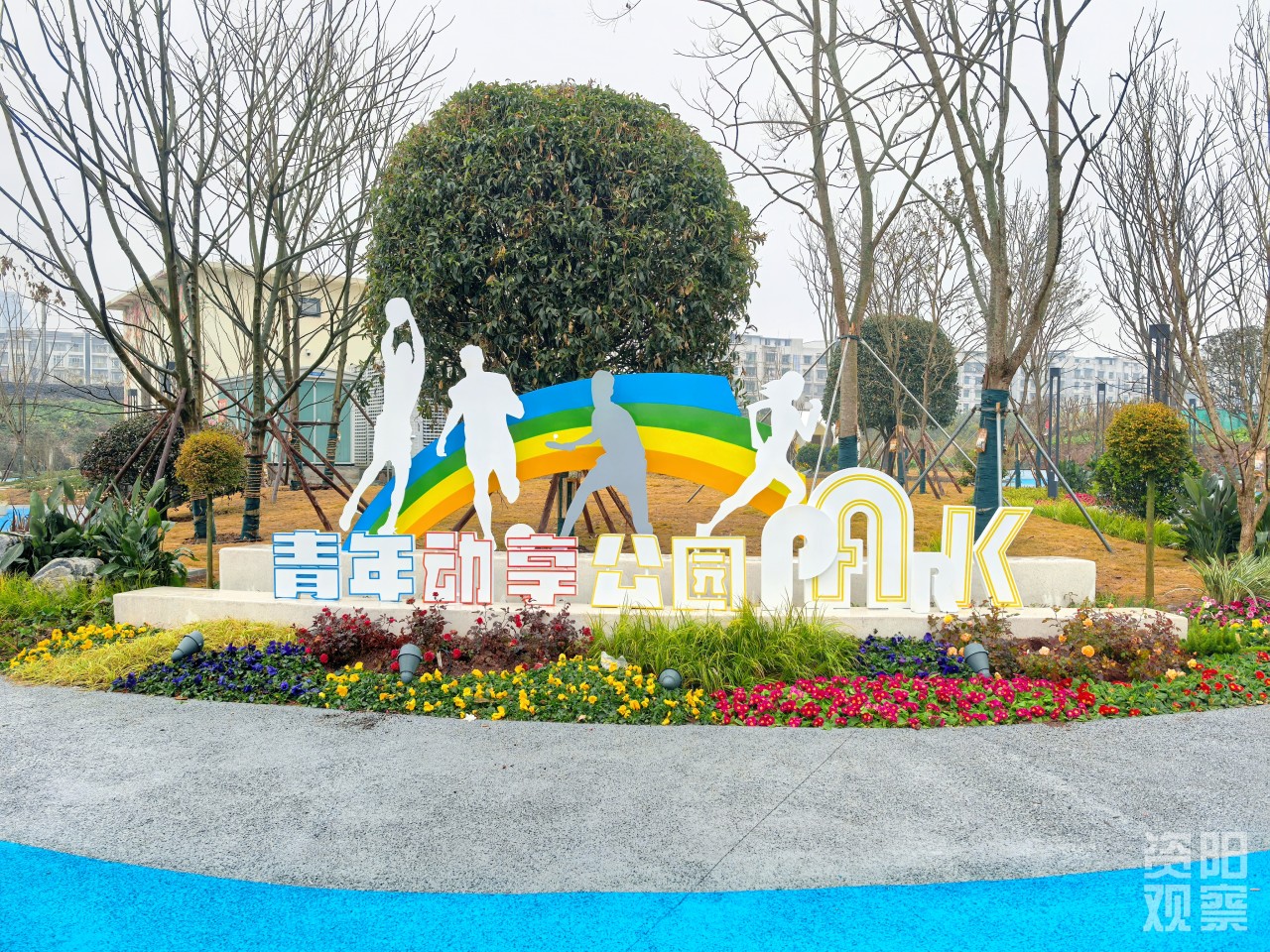 在位于建设南路西延线成渝铁路旁空地的青年动享公园内,墙面绘着可爱动物与缤纷花朵。独特的书屋凉亭造型新颖,为市民提供了惬意的休憩空间。健身区、篮球场色彩斑斓,各类健身器材一应俱全。还有那醒目的柠檬雕塑和充满活力的彩虹雕塑,无不彰显着青春与活力,成为市民运动放松的理想之地。