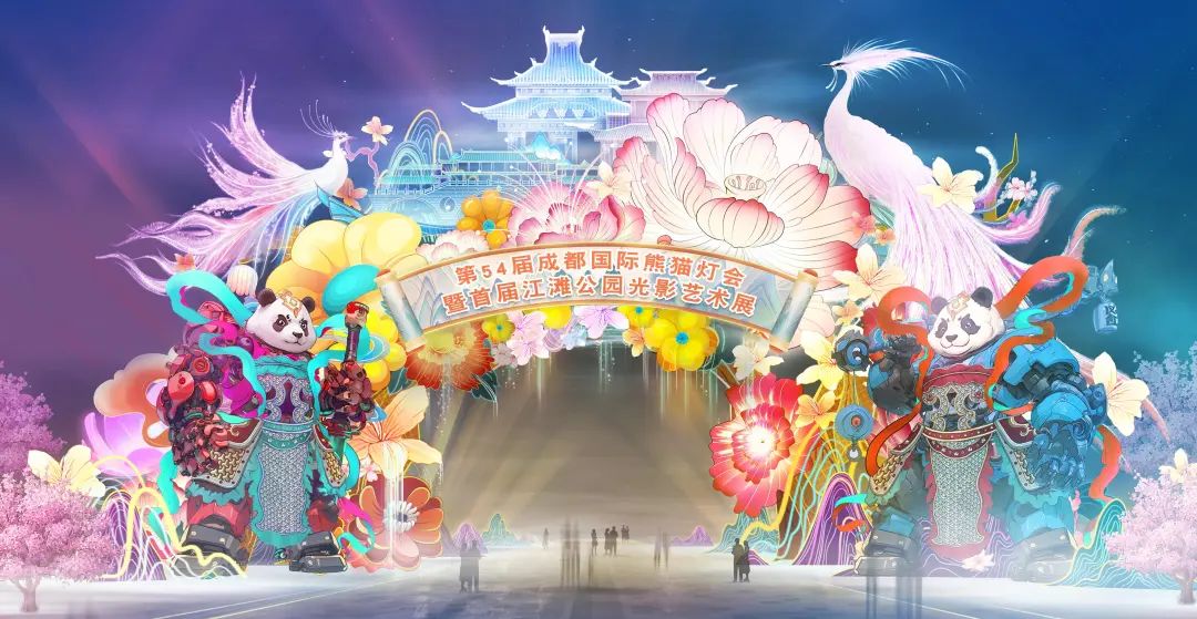 第54届成都国际熊猫灯会暨首届江滩公园光影艺术展由成都市委宣传部、市公园城市局、市商务局、市文广旅局指导,成都文旅集团、成都高新区管委会共同主办。本届灯会由“花重锦官城”“夜游锦江”“水润天府”“蜀里安逸”四大组团构成,以实现中华优秀传统文化与当代艺术设计的融合呈现,突出“创新创造”为核心主旨。同时,灯会还引入了优质餐饮、文创、数字娱乐等业态,着力为市民游客打造一个既可观赏又可进入的光影消费新场景。