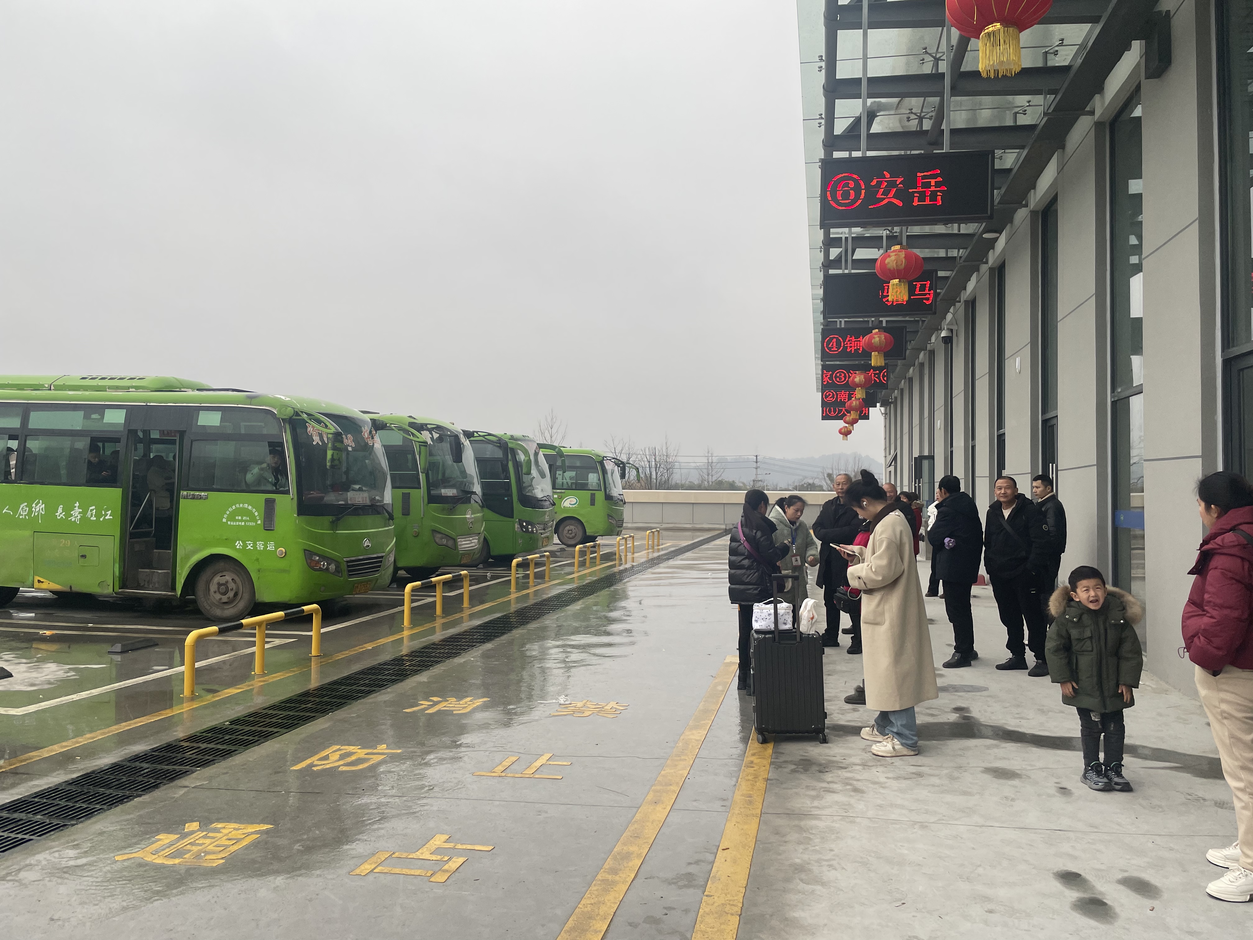 旅游在资阳北综合客运枢纽站发车区有序候车。