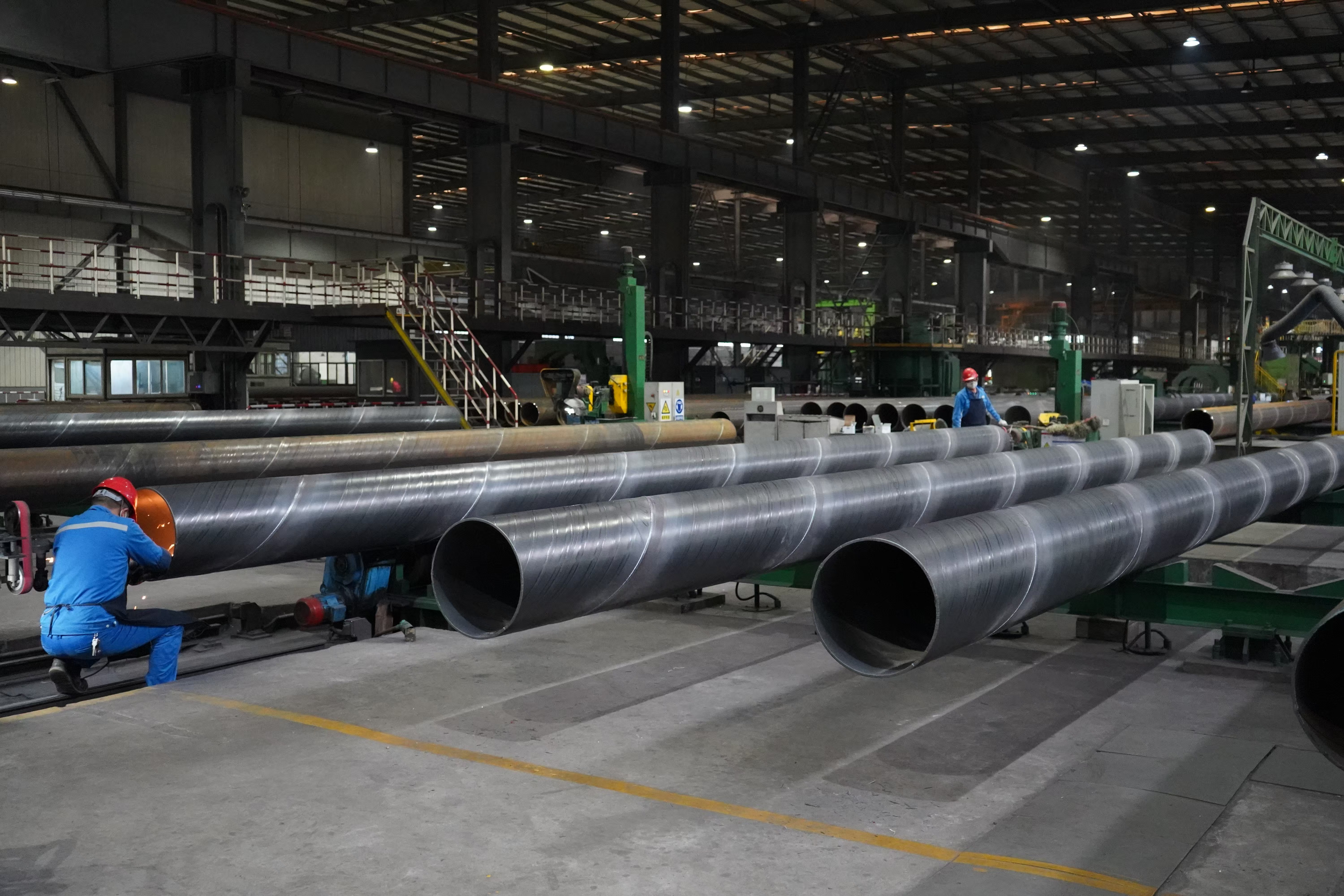 资阳石油钢管有限公司螺旋管工厂生产中。