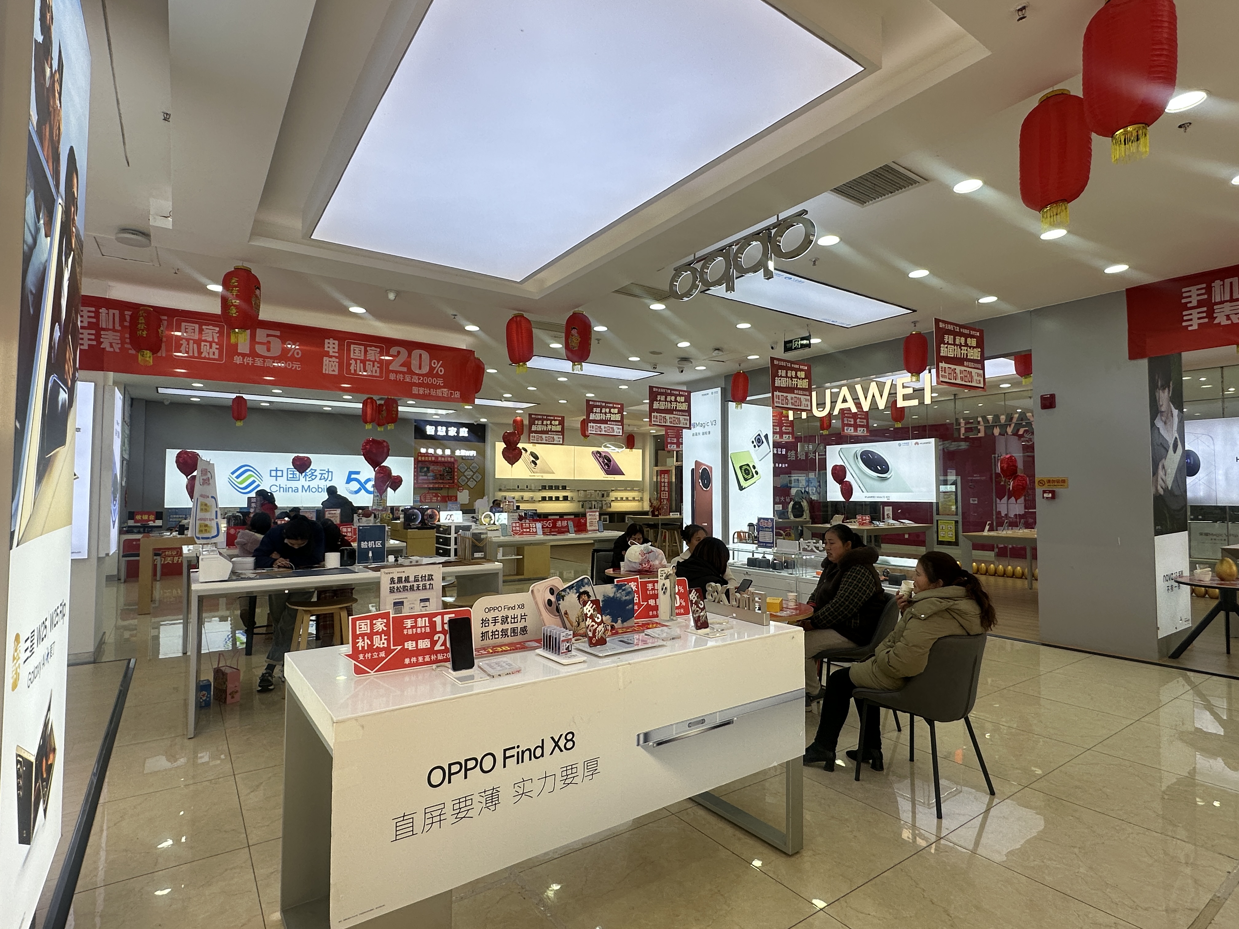 “春节以来,客人多了近5成,手机以旧换新的客人尤其多,卖得最好的是2000元到3000元这个价位的手机,以旧换新一般能补贴300到400元。”营业员肖华丽告诉记者。