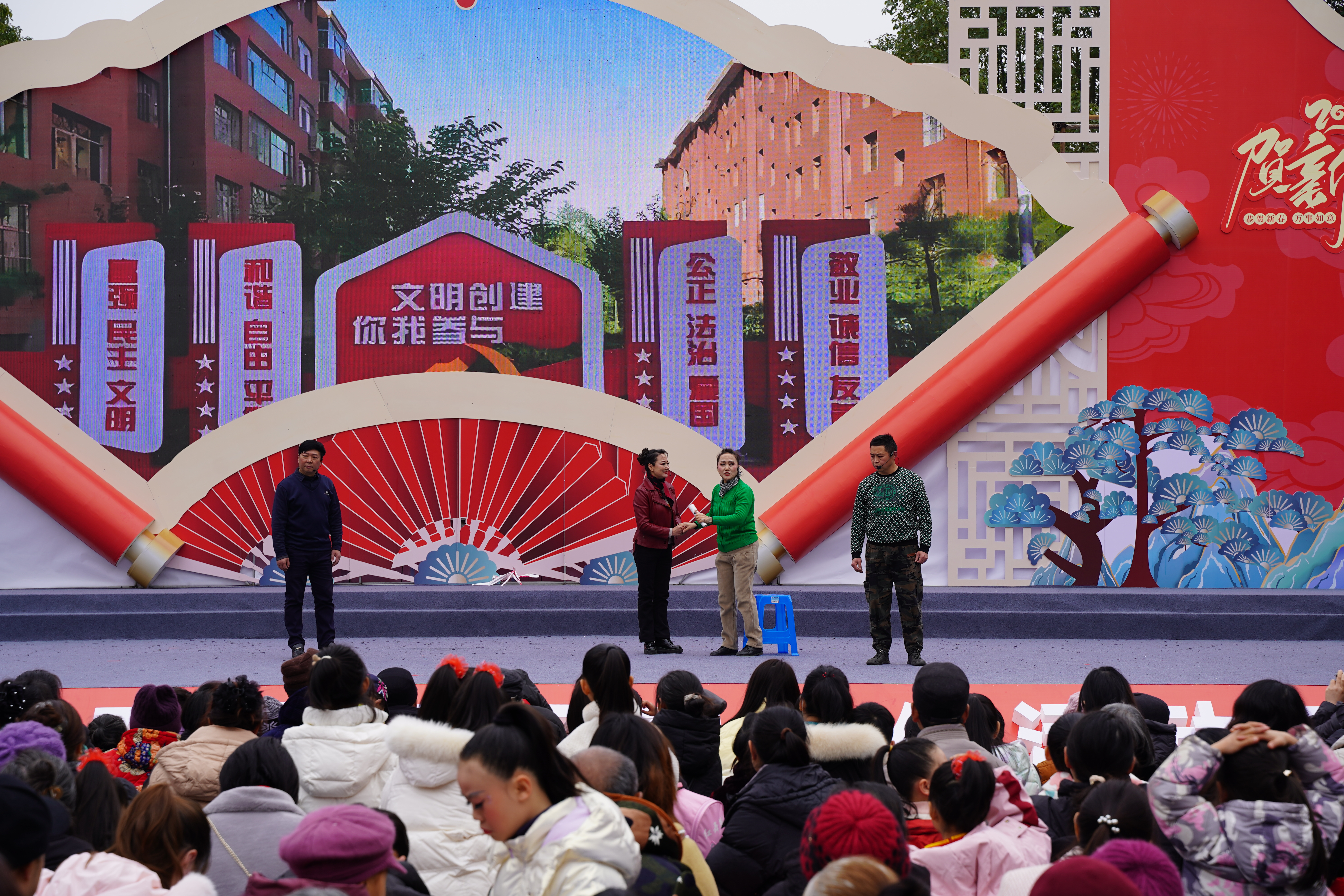 活动现场,活力四射的开场舞蹈《春满乾坤》瞬间点燃现场气氛,拉开了精彩演出的序幕。二胡齐奏《赛马》则以激昂旋律带领观众感受奔腾之势,小品《楼上楼下》贴近生活,幽默诙谐,引得观众笑声不断;《华鼓长安行》重现古韵风华,《今年一年级》展现童真童趣,川剧绝技《变脸吐火》将现场氛围推向高潮,《小星星》《山哈放歌》《文明资阳更美丽》等节目也各具特色,为市民带来了一场视听盛宴。