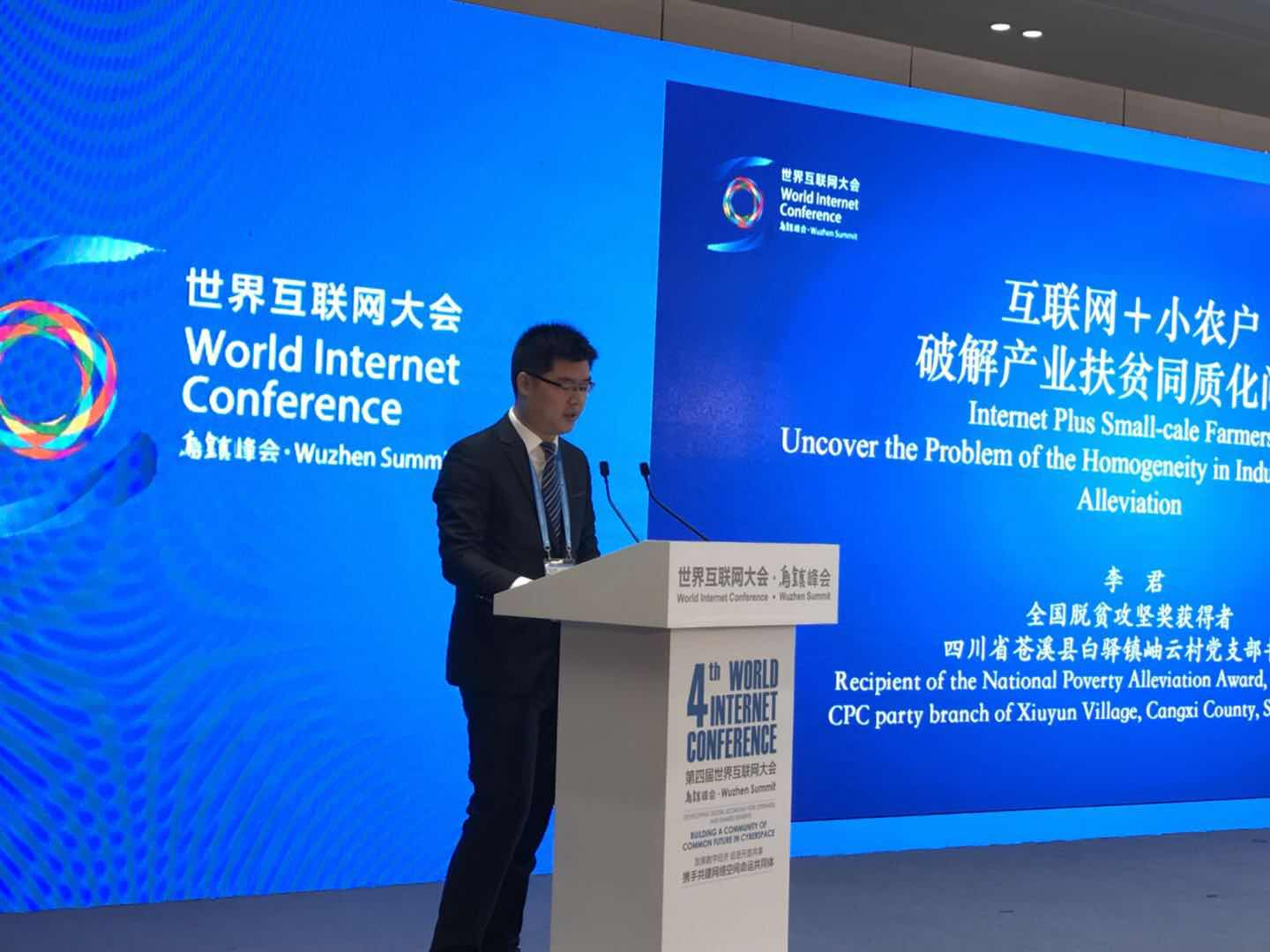 “大家好,我是来自四川省广元市苍溪县白驿镇岫云村的党支部书记李君。”今年32岁的李君在四川岫云村工作已经十个年头,12月4日,在世界互联网大会的首场论坛“共享红利:互联网精准扶贫”论坛中,他作为全国脱贫攻坚奖获得者代表,与京东董事局主席兼首席执行官刘强东等同场,作主题演讲。李君介绍,岫云村应用互联网思维解决了产业扶贫的同质化问题,用互联网技术解决了农产品品质问题,通过互联网的传播让岫云村的品牌和农产品实现了高价值。