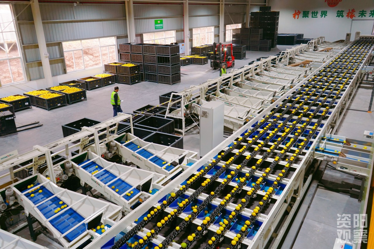 正在进行智能分拣的安岳柠檬。
