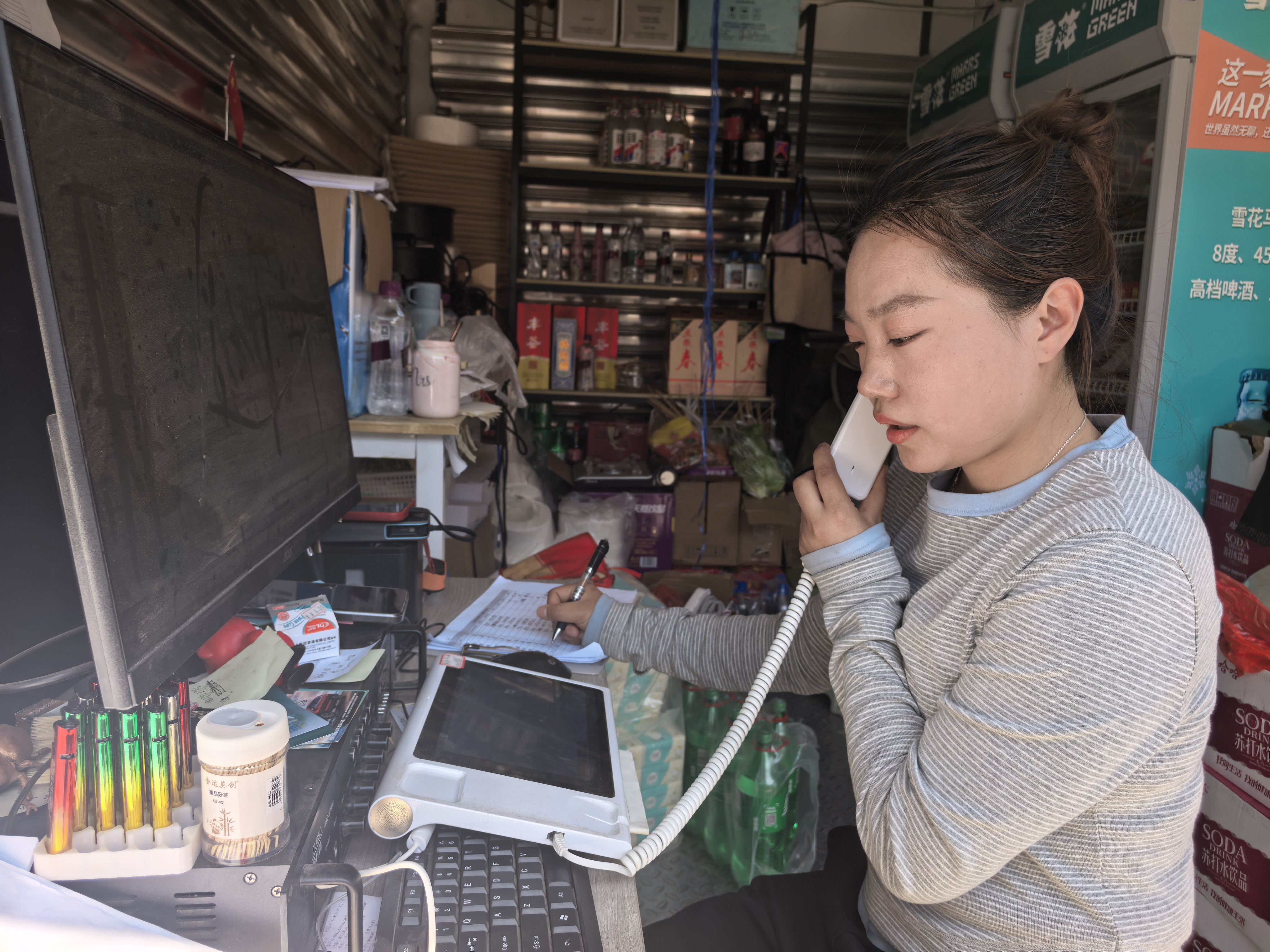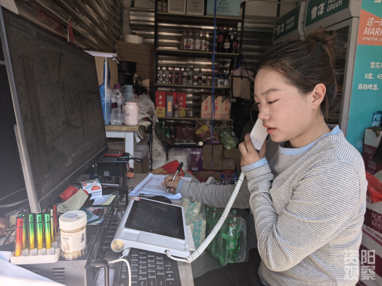 杨诗琪正在接听电话。