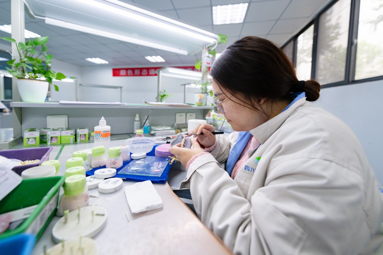 四川恒和鑫口腔科技有限公司义齿生产车间。全媒体记者 张建 摄