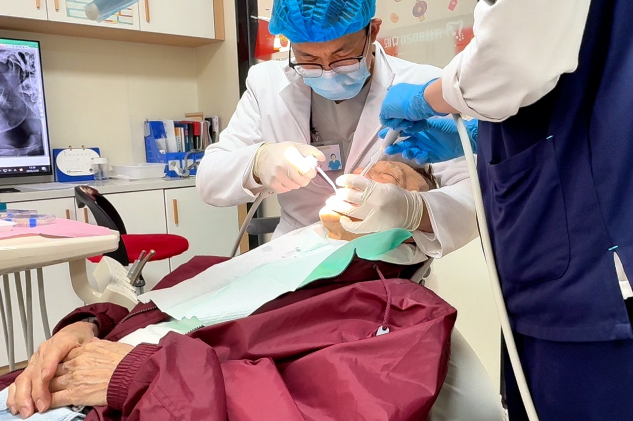 邱耀才正在进行口腔诊疗。全媒体记者 张建 摄