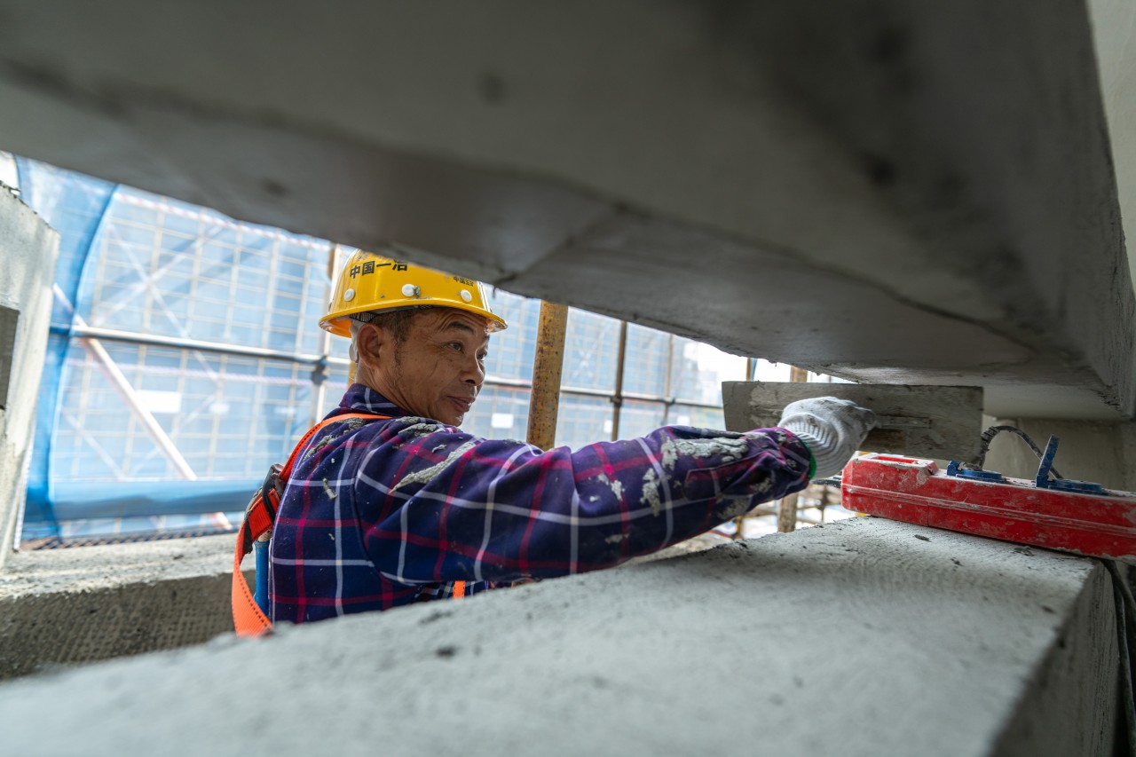 走进施工现场,200余名建筑工人分工明确,有条不紊地进行外墙抹灰、防水保温、陶瓷面砖粘贴等作业。不远处,塔吊车巨臂挥舞、运转不停,将水泥精准吊运至施工区域,整个工地充满着紧张忙碌、大干快上的奋进气息。