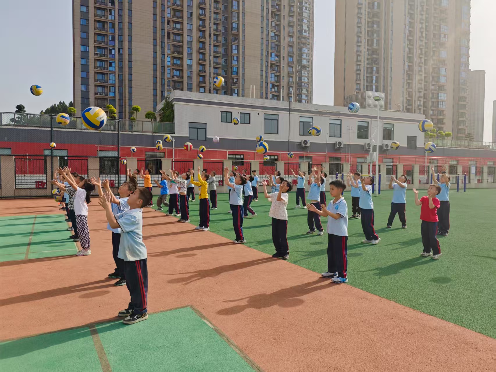 学校体育老师杨绍华介绍,此次足球比赛将在各个年级依次开展,涵盖足球、啦啦操等项目,让每个学生都能感受到体育的快乐“冲击波”。