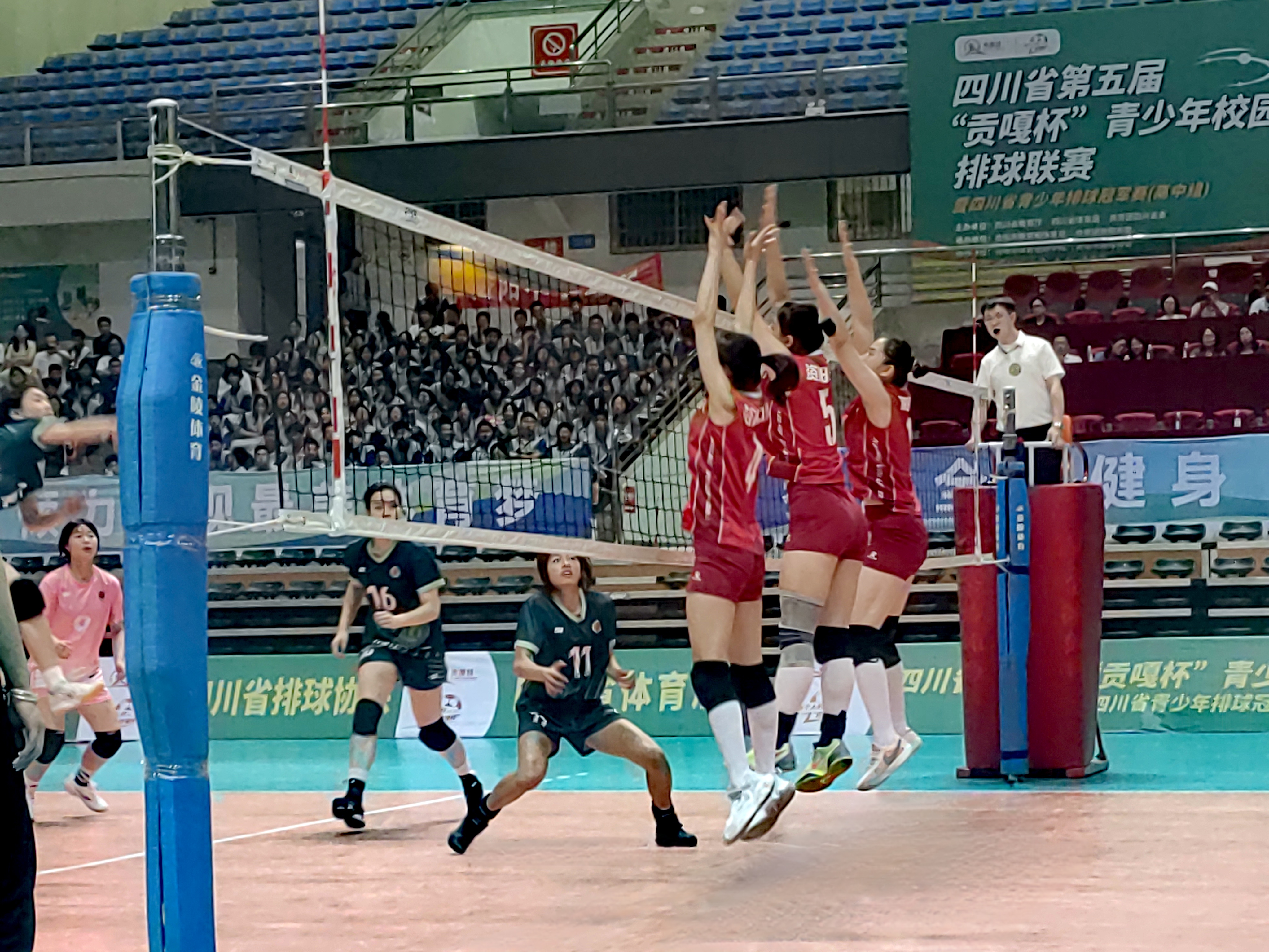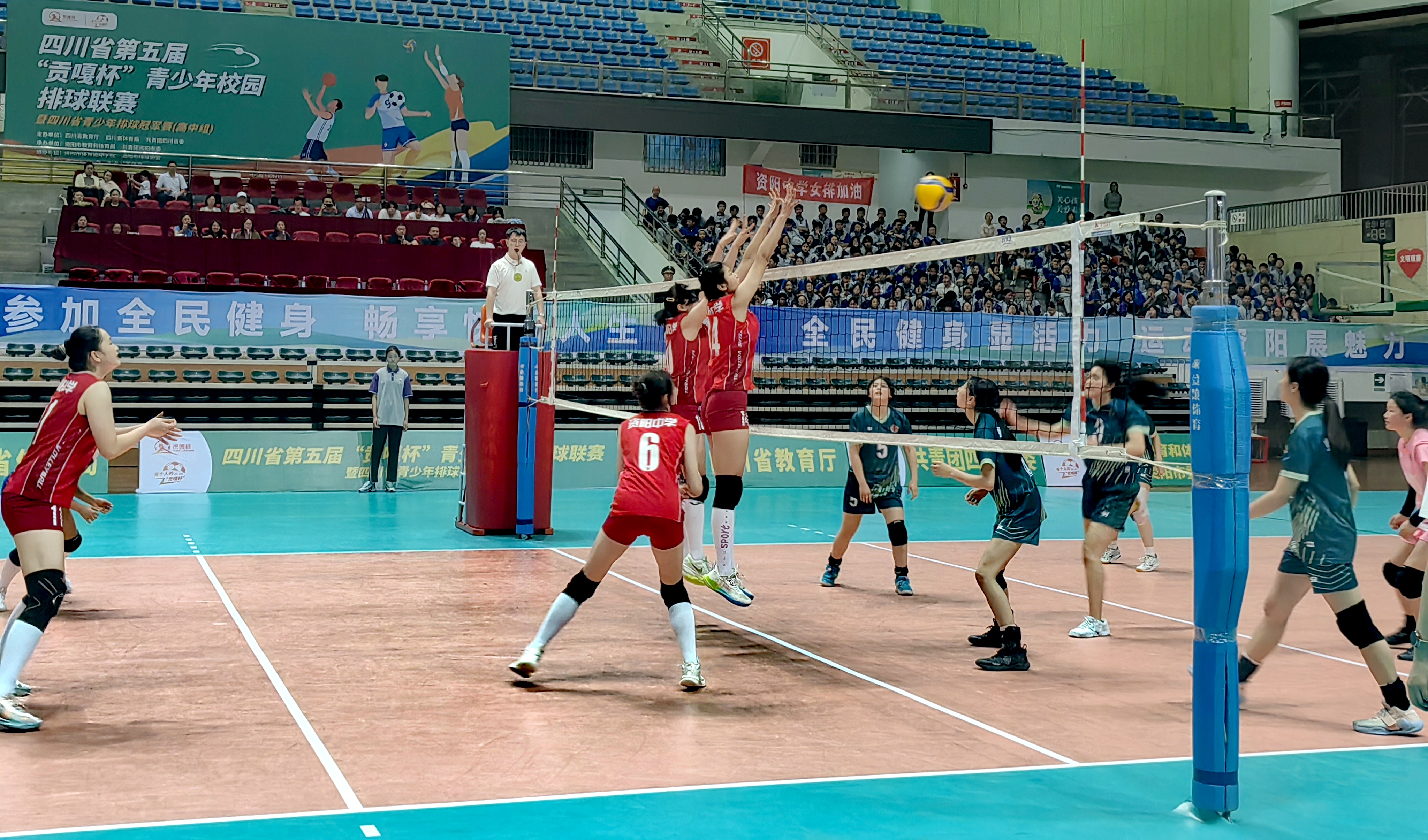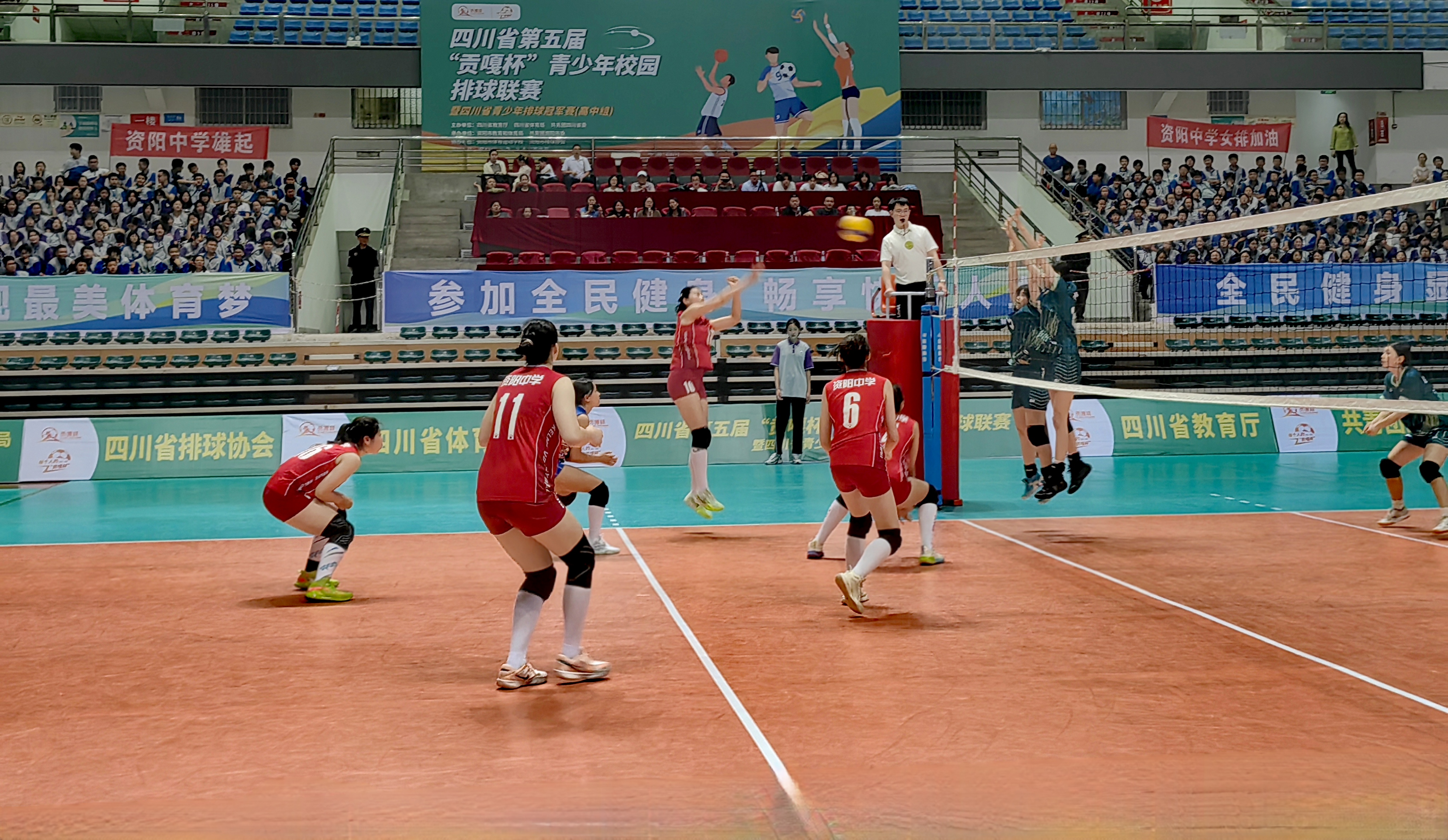 5月9日晚7:30,资阳市体育馆内热潮涌动,四川省第五届“贡嘎杯”青少年校园排球联赛暨省青少年排球冠军赛高中女子组半决赛在此激情上演。主场作战的资阳中学女子排球队以雷霆之势,3:0横扫成都市郫都区第一中学代表队,率先锁定一张总决赛入场券。