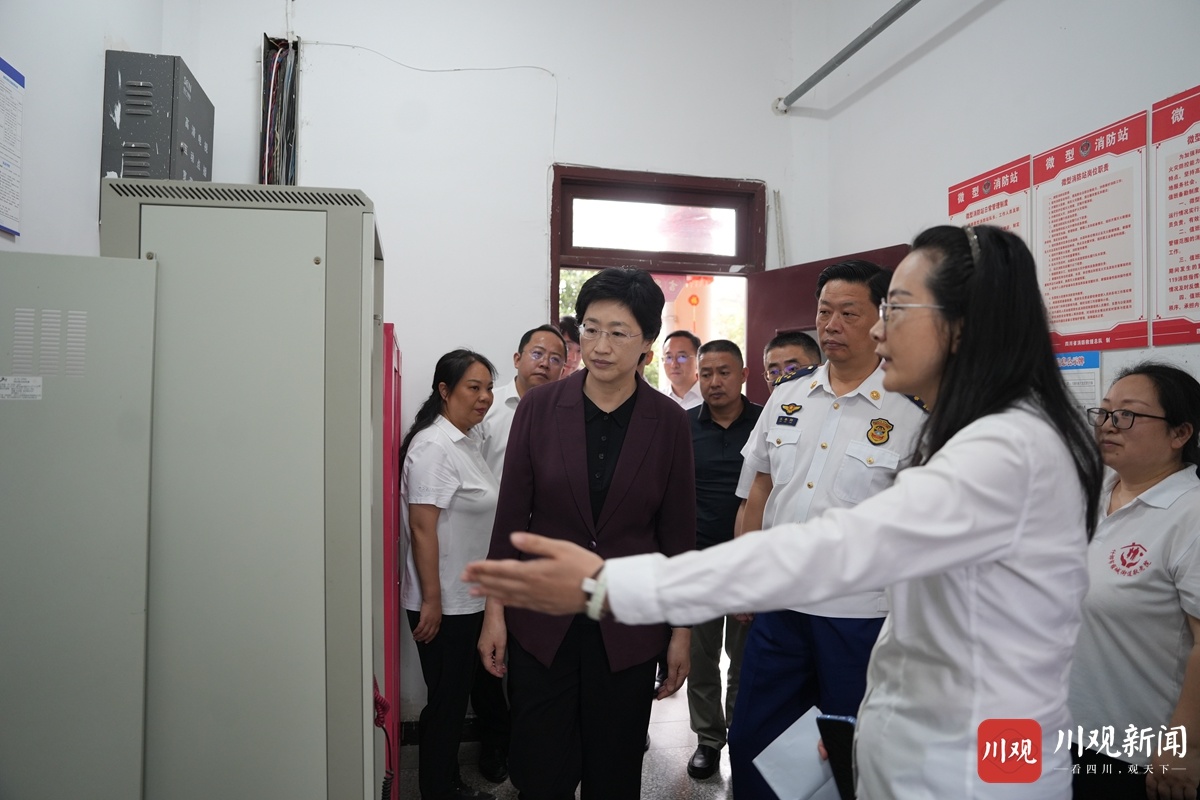 施小琳在什邡市雍城街道敬老院,检查微型消防站、消防水池等设备运行和安全管理情况。