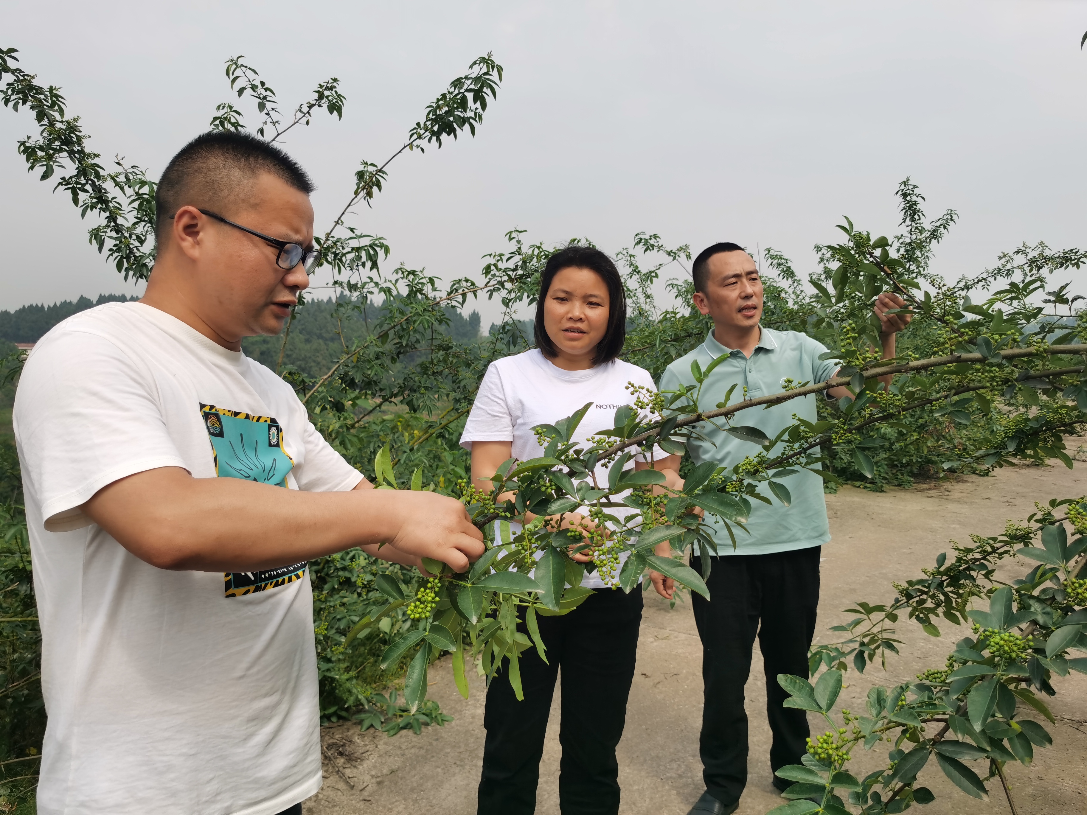 兴隆镇农业服务中心技术人员现场指导金龙村藤椒果期管理。