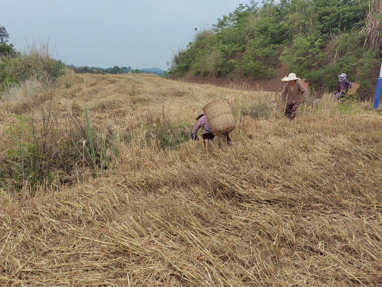 村民开展拾麦行动。