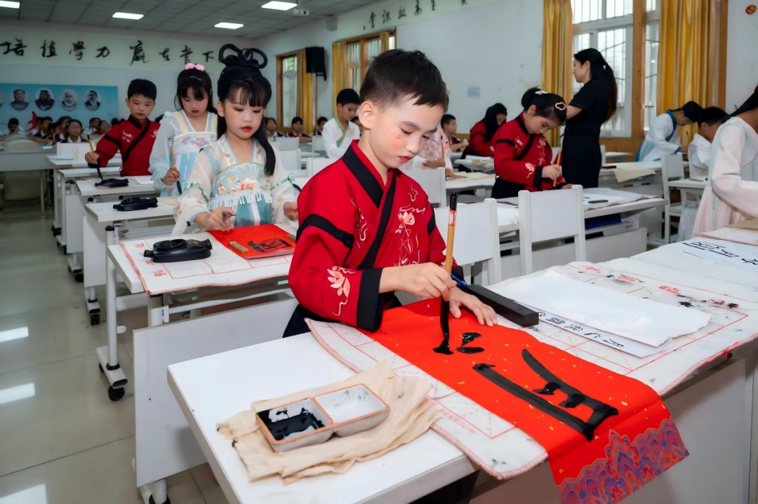 墨香氤氲间,孩子们以笔为舟,在横竖撇捺的江河里追寻文明的印记,让古老的书法艺术在稚嫩的笔端绽放时代的光彩。这不仅是技艺的传承,更是一场跨越时空的美学对话──当墨迹在宣纸上缓缓晕开,我们看见的不仅是汉字的结构之美,更是一个民族精神密码的当代书写。