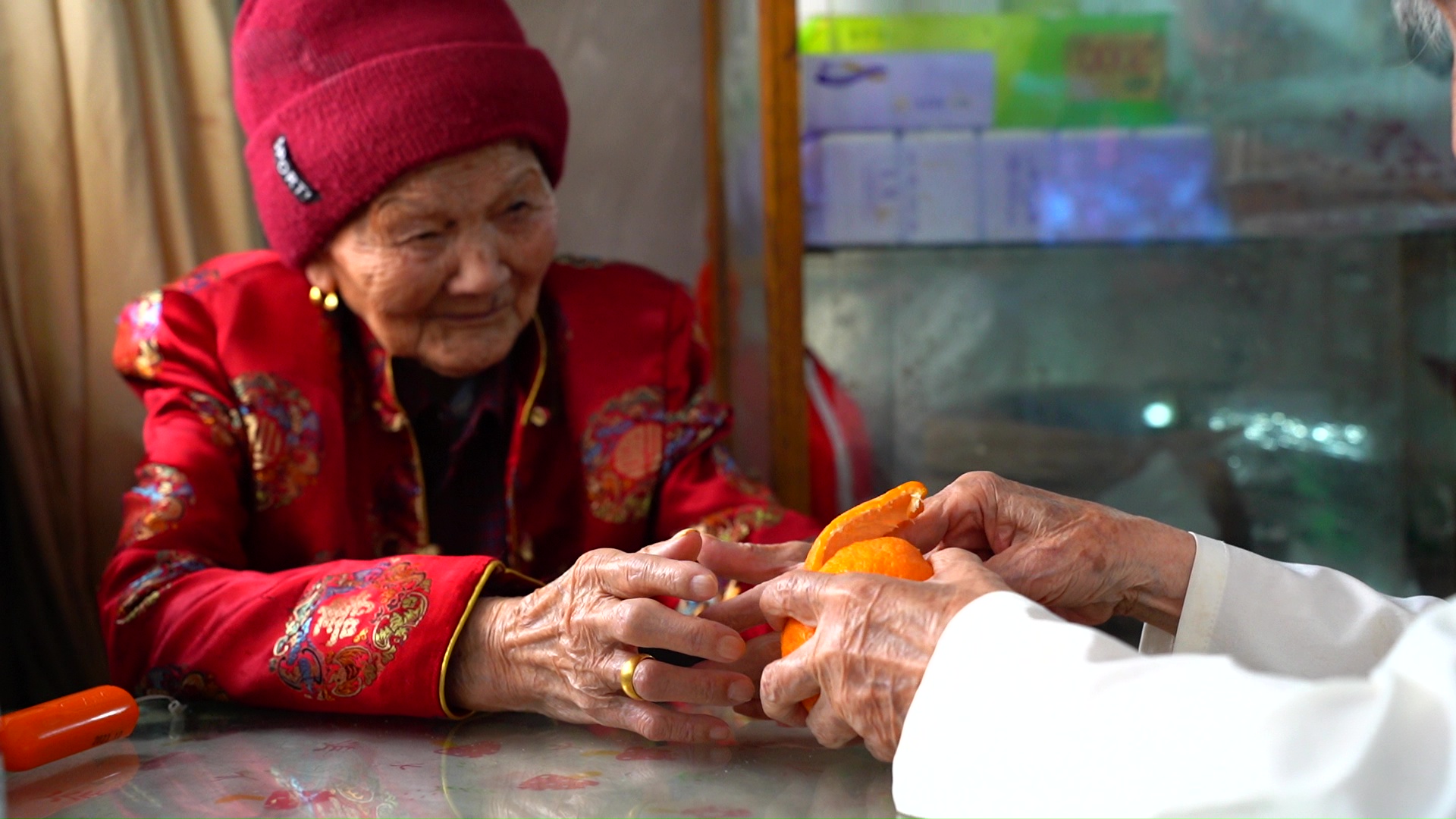 “爷爷很关心奶奶,总是怕她不吃饭,每顿饭都要提醒她多吃点。”50多岁的孙女蒋昌莉望着祖父母布满老年斑却紧握的手,笑着揭开白瓷碗里的温情。