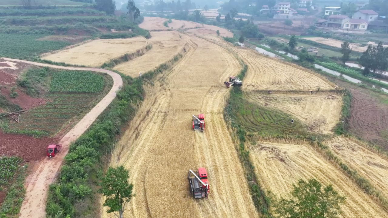正午时分,三合村的梯田泛起层层金波。随着最后一车麦粒运出,这片土地即将披上绿装,孕育新的希望。从麦浪滚滚到稻花飘香,雁江正以科技为笔、土地为卷,书写着“田成方、粮满仓”的乡村振兴新篇章。