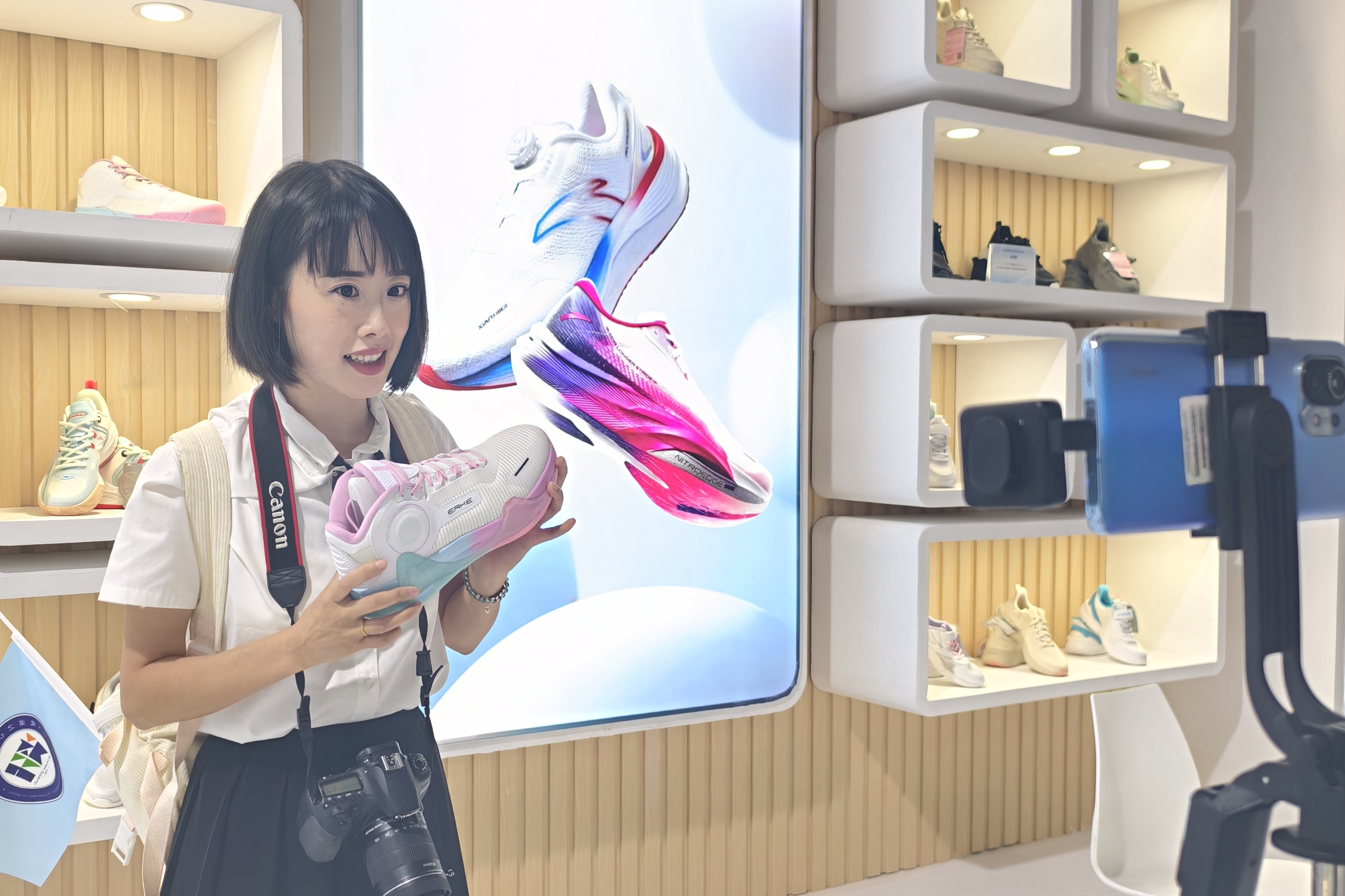 主播正在展示“安岳造”运动鞋。安岳县委宣传部 供图