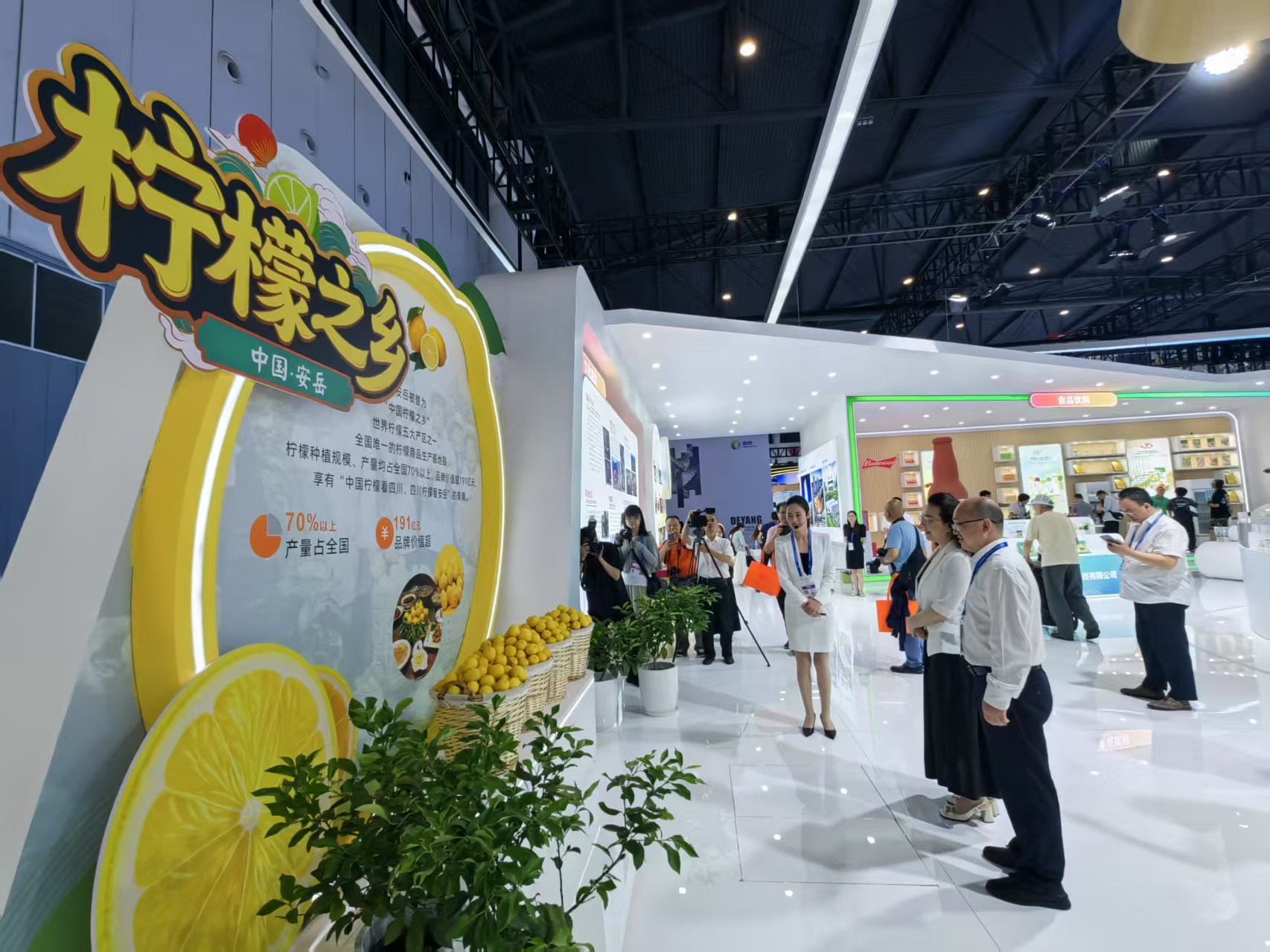 步入资阳展馆,一股清新的柠檬香扑鼻而来。“这些柠檬产自哪里?”一位国外客商好奇地询问。“就在四川资阳的安岳县!”现场工作人员微笑着介绍:“安岳是‘中国柠檬之乡’,也是全国唯一的柠檬商品生产基地县,还是世界柠檬五大产区之一。安岳柠檬种植规模、产量均占全国70%以上,品牌价值超191亿元,享有‘中国柠檬看四川、四川柠檬看安岳’的美誉。”