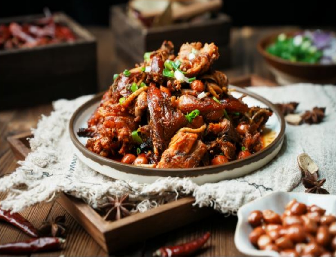 手撕烤兔是资阳“资味”长寿美食菜系的“扛把子”选手。麻辣鲜香、外皮酥脆,内部肉质紧实,需沿兔肉纤维顺向手撕成条,每一口都藏着地域特色和传统工艺的灵魂。如今,这份美味不再“自由生长”,从选料到烤制,再到手撕拌制,统统有了“标准模板”。