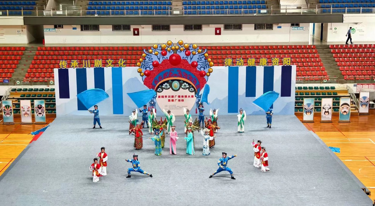 “咿呀──”高亢的川剧唱腔划破午后晴空,资阳市体育馆内参赛者们齐刷刷抡手转身──这不是戏曲舞台,而是5月28日资阳市川剧广播体操大赛暨推广活动的超“燃”现场。17支队伍以“云手”开合、“踢腿”亮相,紧接着一连串灵巧多变的步伐,转瞬又变为刚猛有力的武术动作,其间还穿插着突如其来的川剧变脸,这场汇集了多元艺术风格的赛事,让百年非遗在全民健身热潮中“活”出新花样。