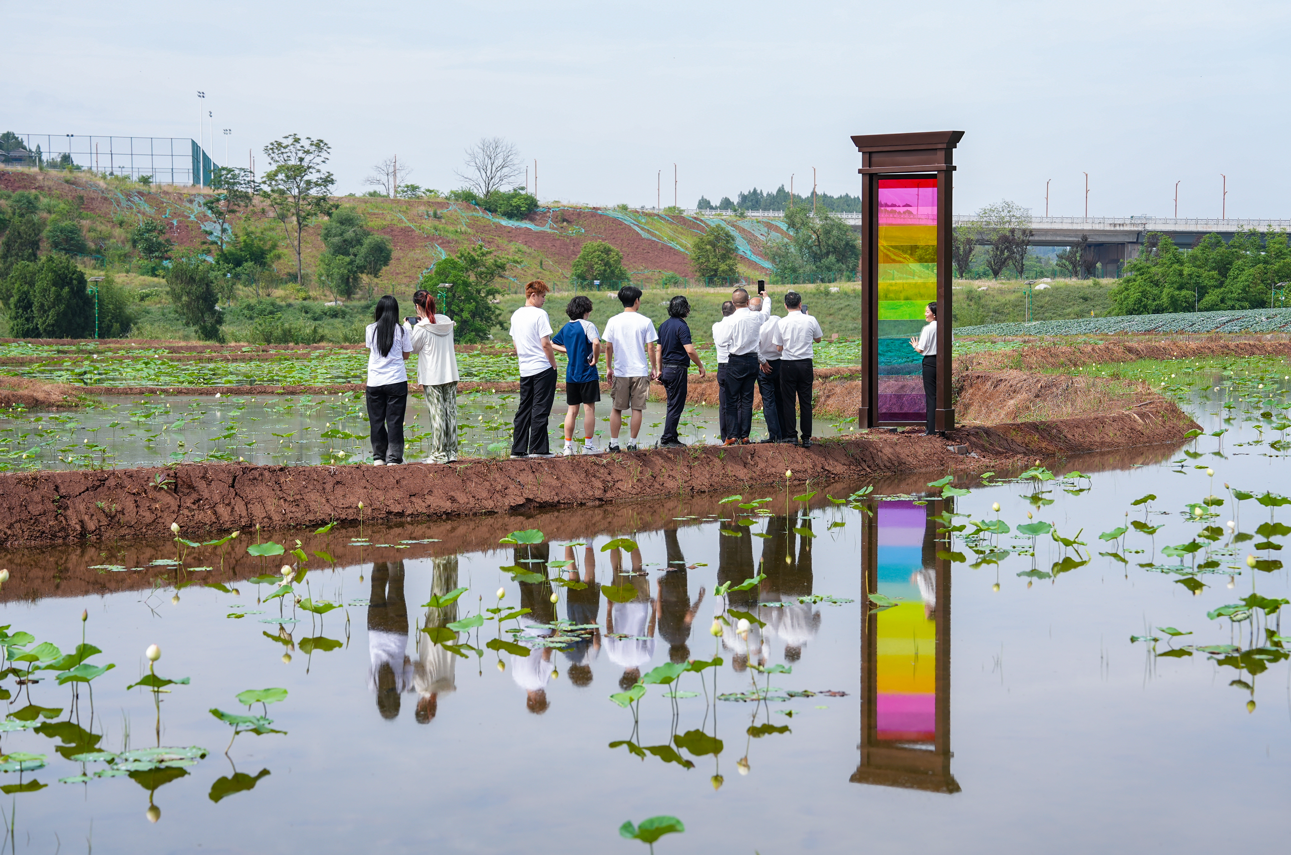 川音美院师生共创《湖畔荷韵》。