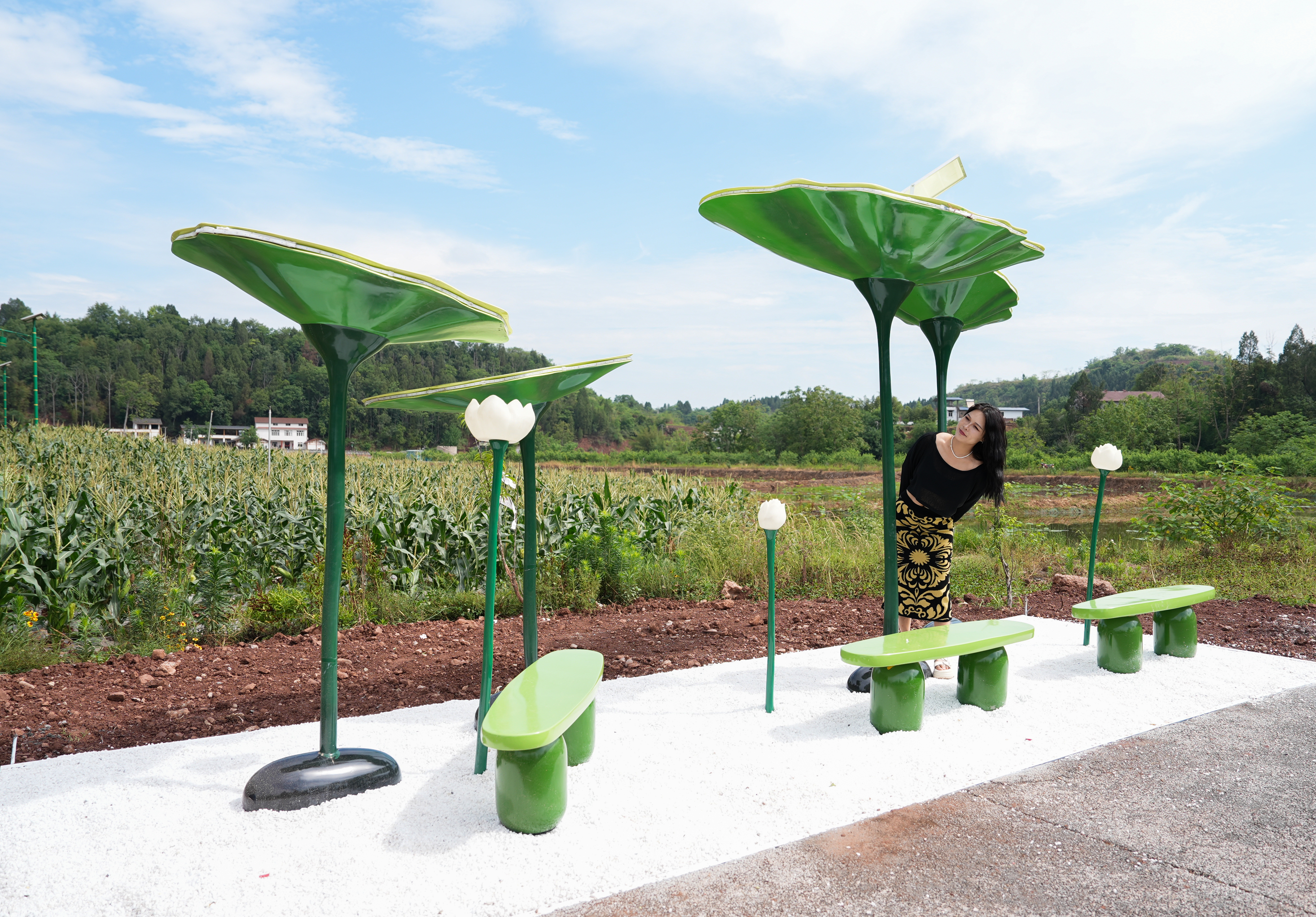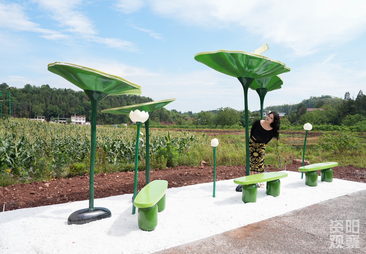 2.5公里艺术廊道按“乡村生活区—生态互动—数字未来区”布局:俄罗斯功勋艺术家阿列克谢的雕塑《为村民塑像》在晨光中投射出温暖的影子,《湖畔荷韵》装置艺术倒影与藕塘里的真荷叶交叠成趣……如今,在红碑社区,艺术“走”上路面,“飞”上房顶,“汇”上墙面,“融”入田野,与乡村环境共生共荣。
