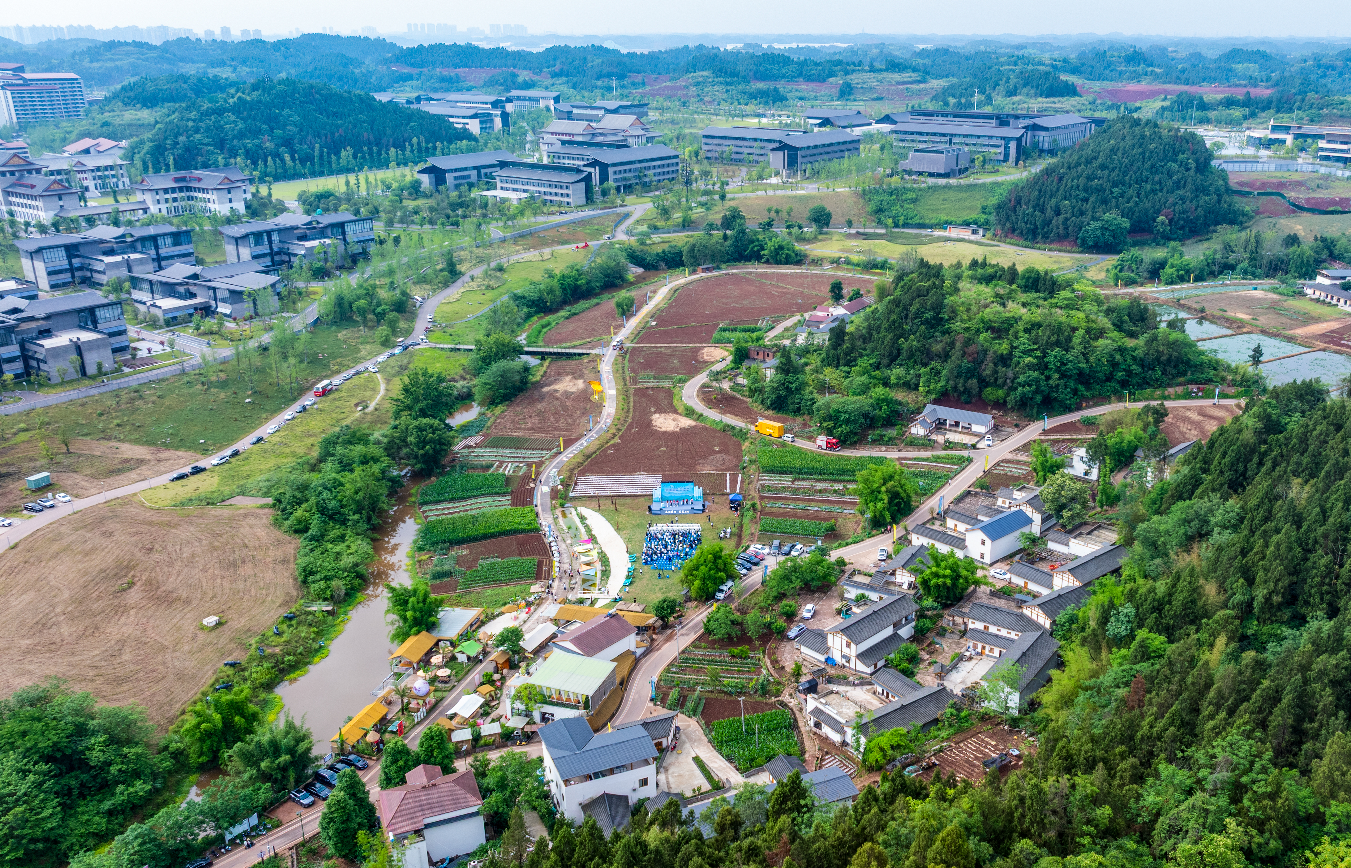 2022年以前的红碑村,曾是川中丘陵典型传统村落──村庄凋敝、劳动力外流。直到四川音乐学院成都美术学院落户成为“美丽邻居”,三年间,美院以田园为画布、村民以生活为灵感,开启“美院赋能美村、美村反哺美院”的双向奔赴。此次艺术季,正是对三年校地共生成果的集中检阅。