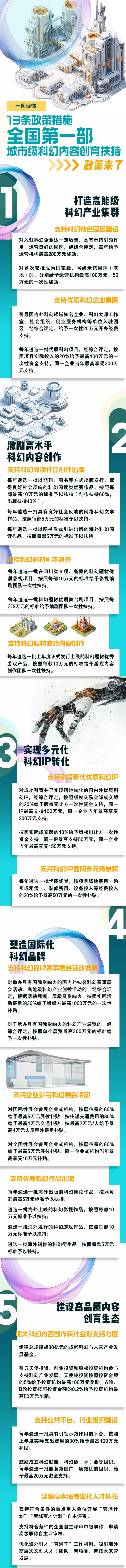 近日,成都市人民政府新闻办公室召开数字文创产业系列政策新闻发布会。会上发布了《成都市推进科幻内容高质量创作与转化的若干政策》,提出13条措施,以“全链赋能、集群支撑、生态筑基、国际对标”为核心,既立足本土文化特色,又瞄准全球科幻产业前沿。值得一提的是,这是全国第一部城市级科幻内容创育扶持政策。