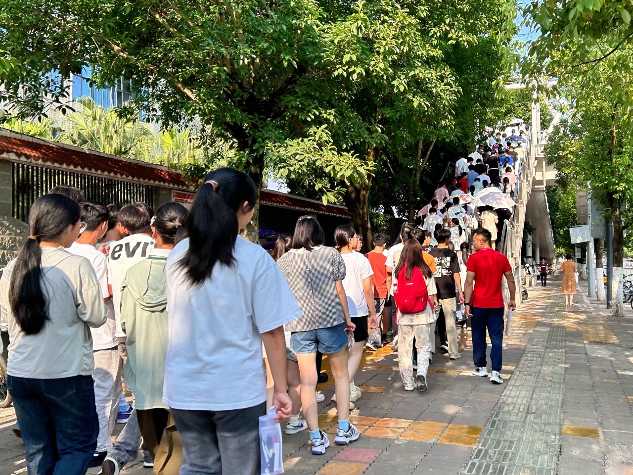 考生们有序前往考点。