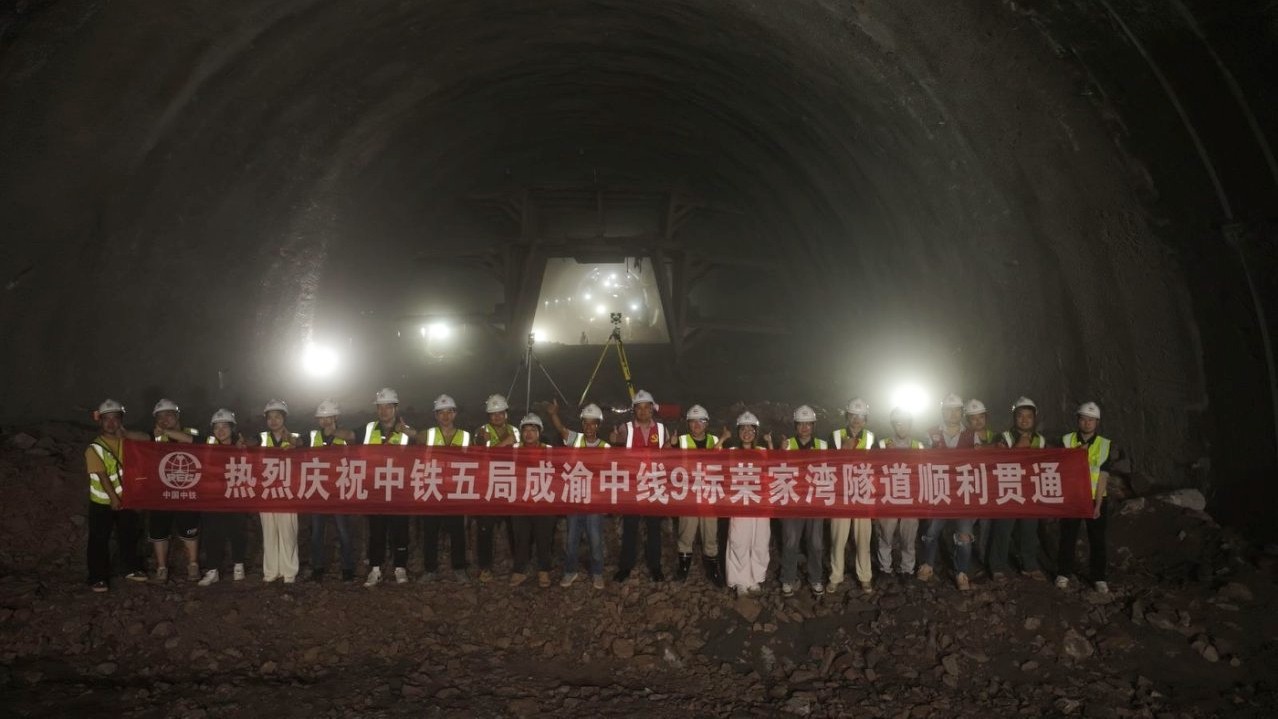 6月18日,随着最后一次爆破,由中铁五局承建的成渝中线高铁荣家湾隧道顺利贯通,为后续架梁通过及无砟轨道施工奠定了坚实基础。