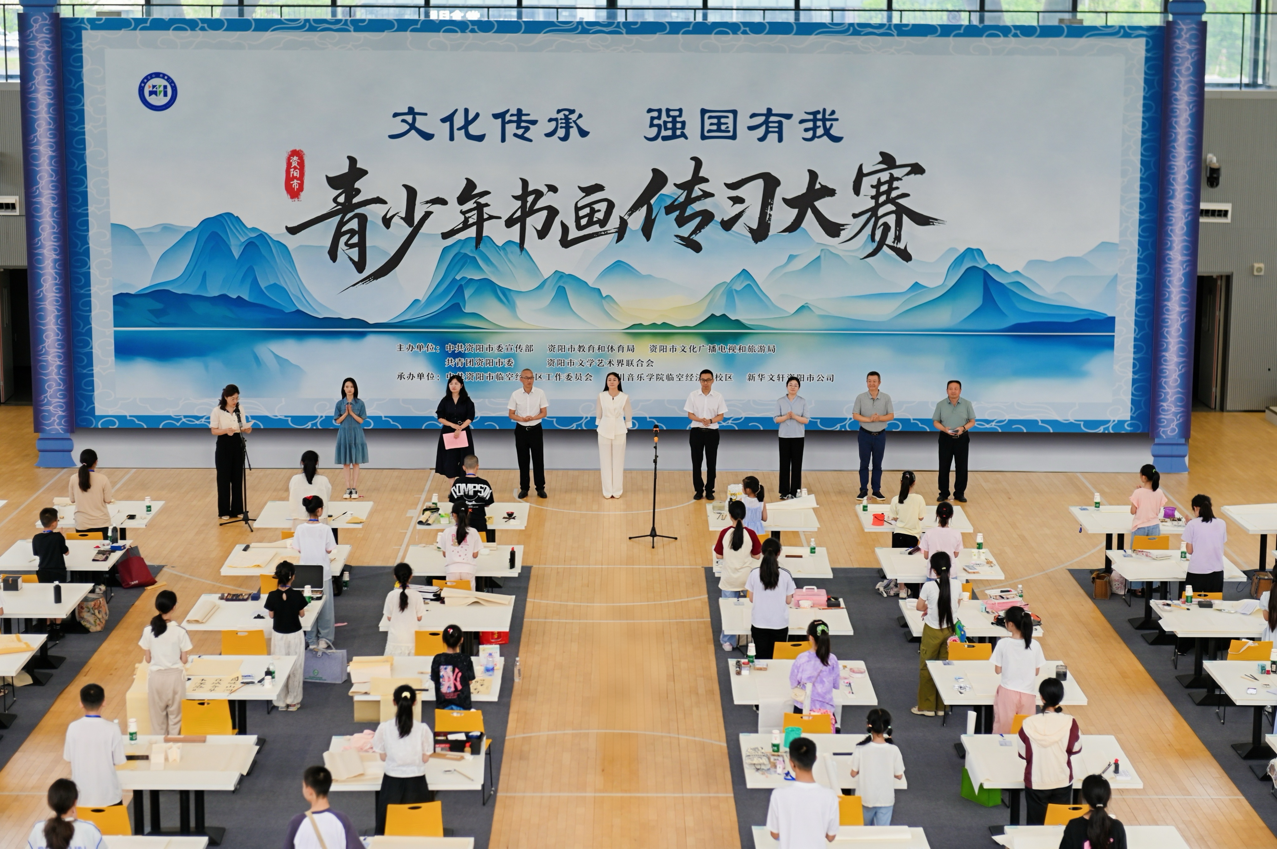 据悉,此次大赛由中共资阳市委宣传部、资阳市教育和体育局等部门主办,中共资阳市临空经济区工作委员会、四川音乐学院临空经济区校区、新华文轩资阳市公司承办。大赛场地设置在四川音乐学院临空经济区校区,正是希望借助这里浓厚的艺术氛围,为青少年们搭建沉浸式的创作空间,在这里,他们可以尽情挥洒笔墨,自由表达对传统文化的理解与热爱,让每一笔、每一画都浸润着艺术的滋养。