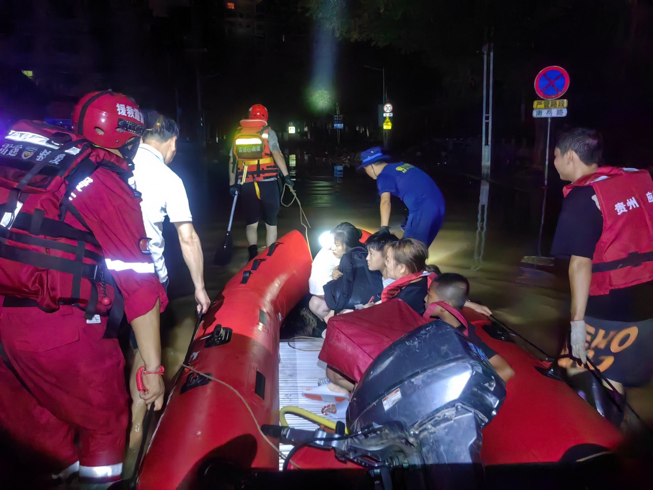历经10小时长途跋涉,救援队于27日晚上11点抵达榕江县,未作休整便开始帮忙搬运救灾物资。直到6月28日下午,第二次洪峰来袭,刚刚得以喘息的队员们再次投入战斗中,在当地应急部门统一调度下,队员们分为两组:一组深入新城重灾区,利用冲锋舟转移被困群众和搜寻有效物资;另一组在老城机动备勤,随时应对突发情况。