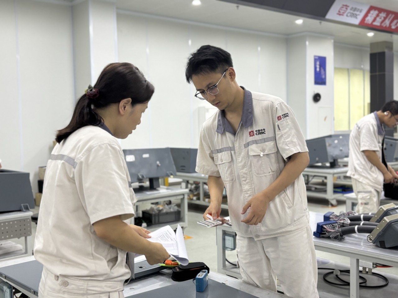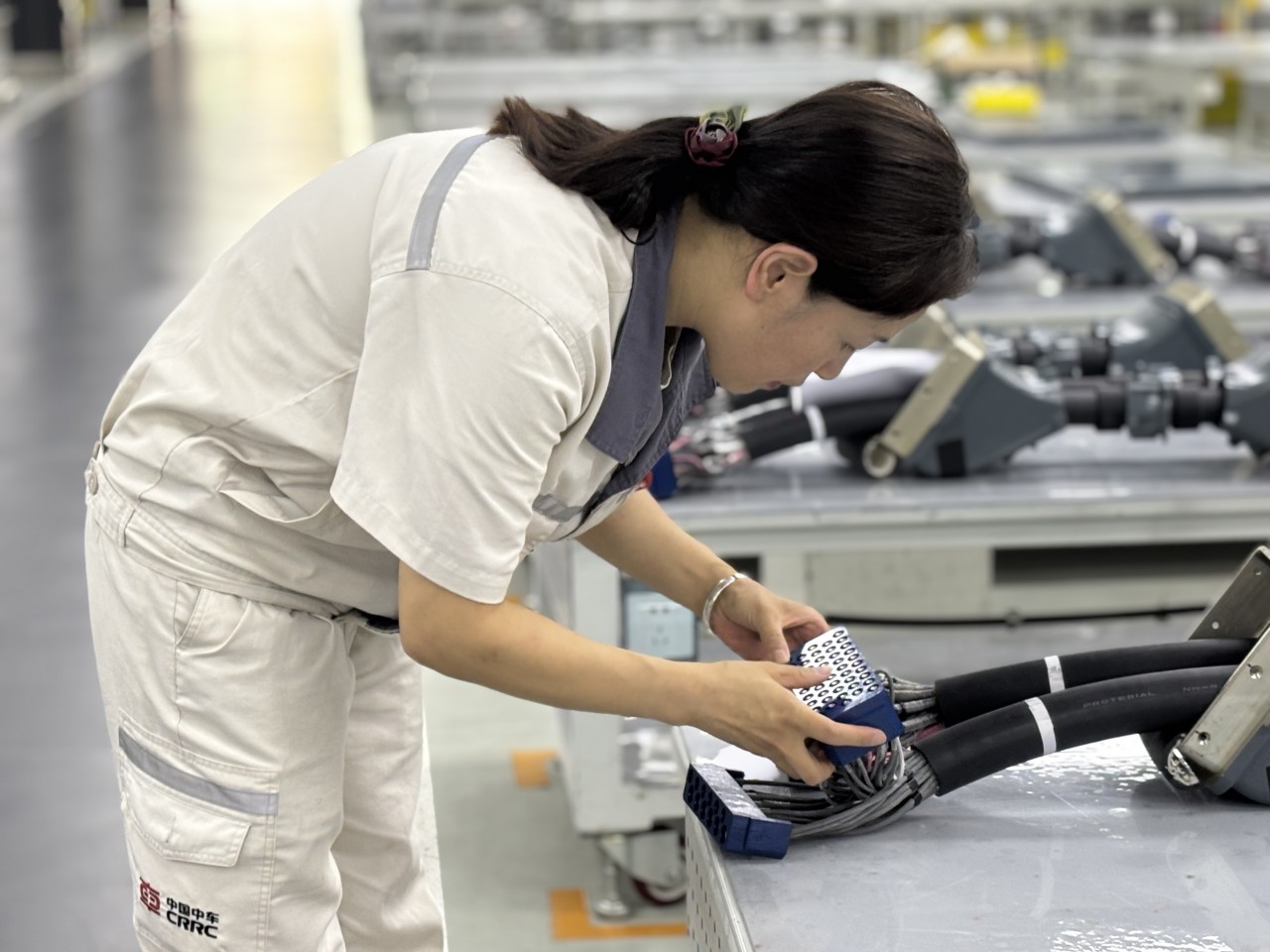 6月25日,资阳中车电气科技有限公司的电气屏柜生产线上暑气蒸腾。技术质量部质量主管邱雪花正俯身在一台即将交付的电气屏柜前,目光如炬,细致检查每一根线缆的弧度走向与接线质量。