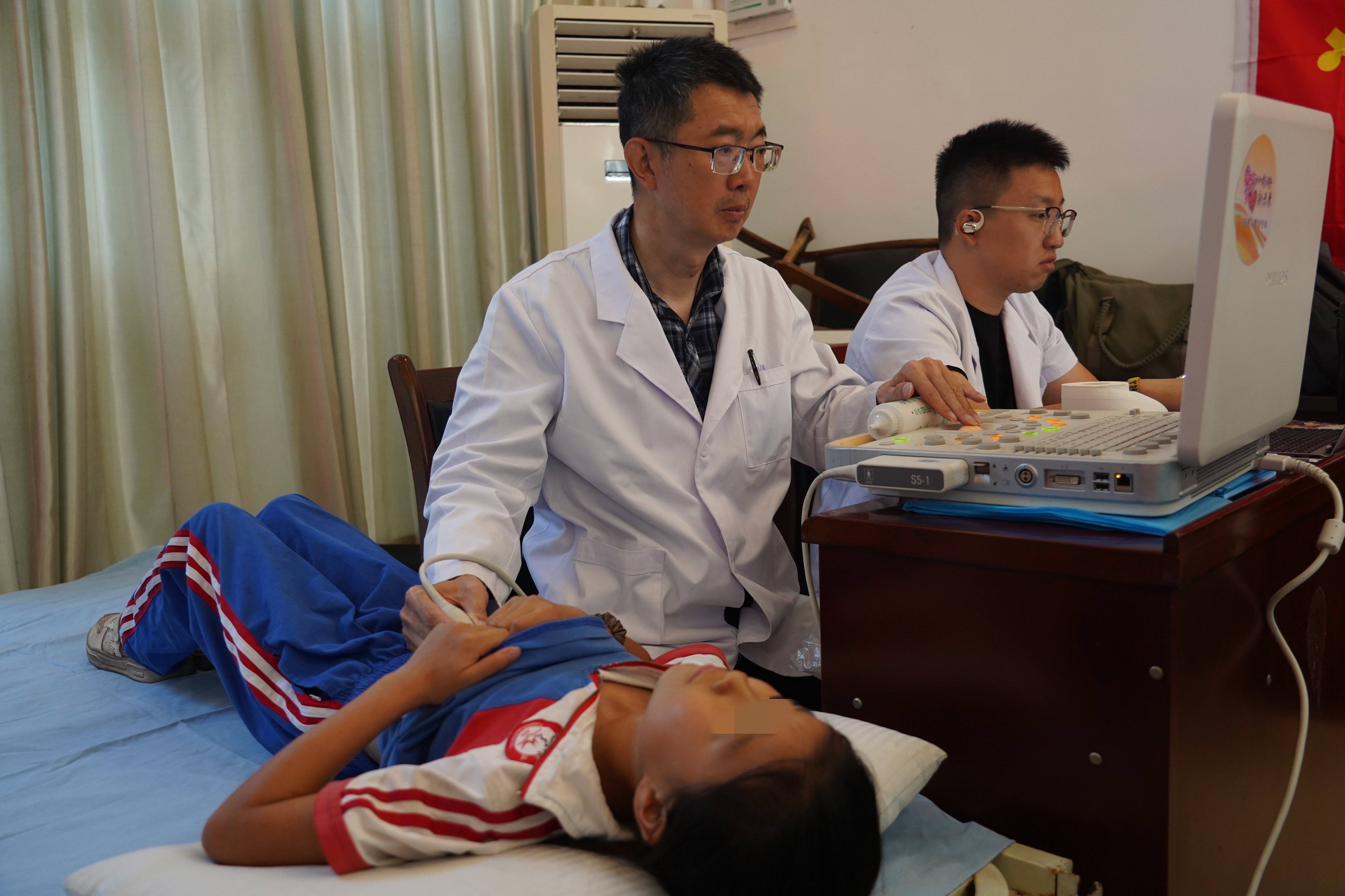 专家团队为患儿做先心病筛查。