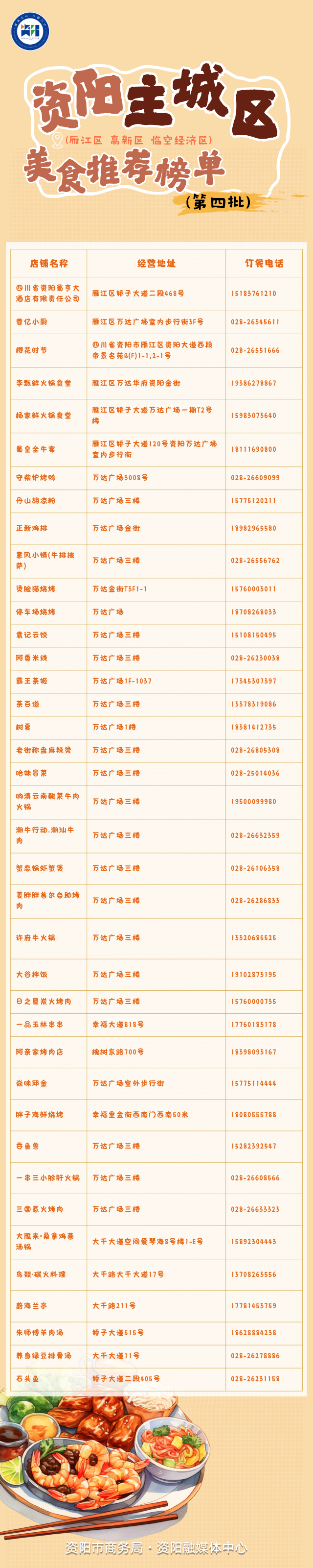 资阳主城区(雁江区 高新区 临空经济区)美食推荐榜单(第四批)