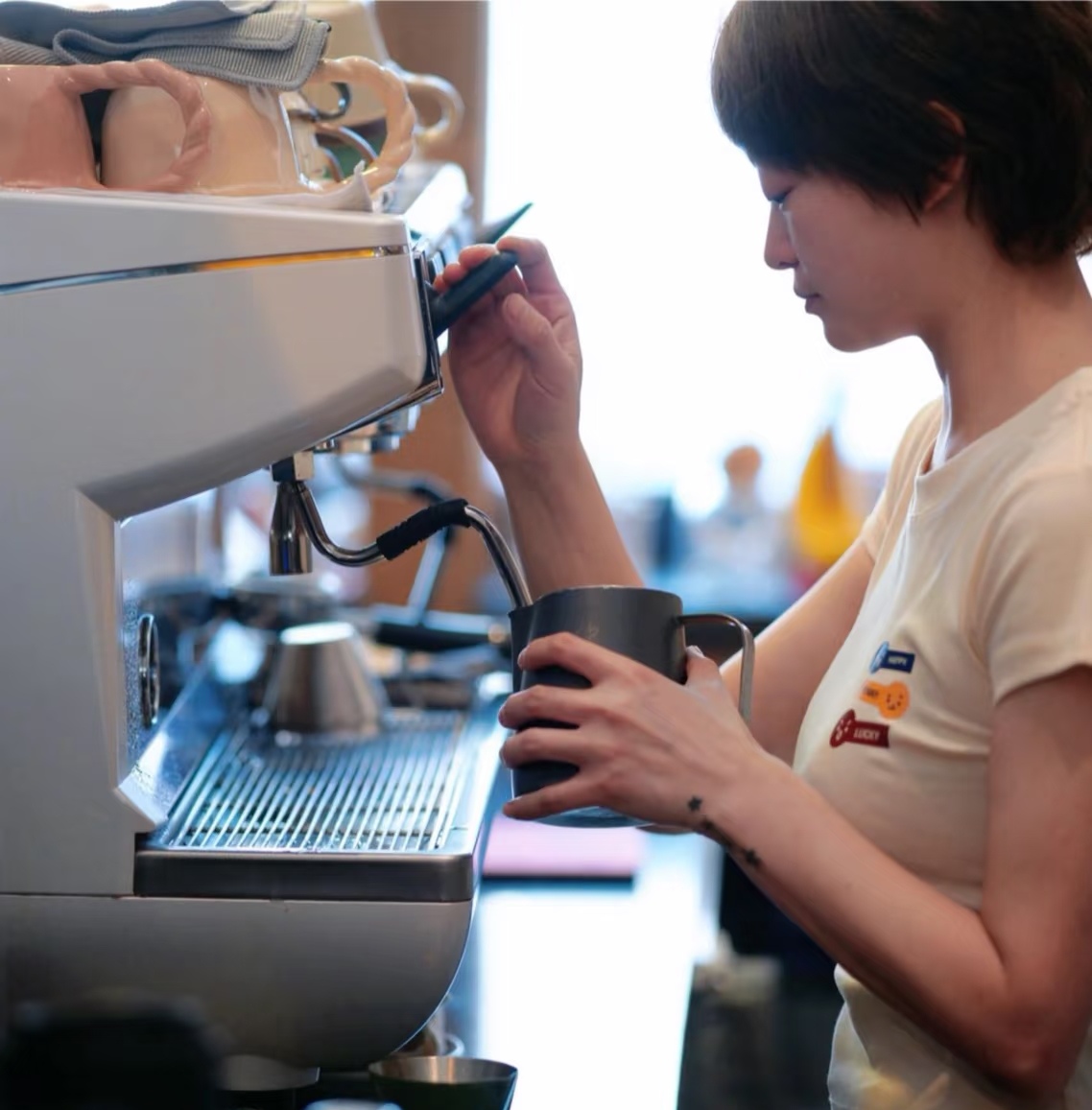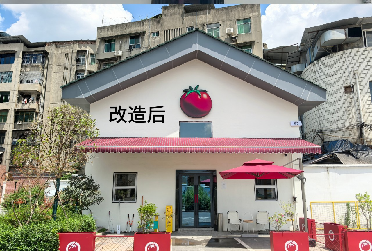 陈进指着门口醒目的红色番茄LOGO回忆道:“原来招牌设计是黑白的字,简约嘛。结果社区有个老大爷说‘黑白色不够喜庆’,建议我们换成红的番茄,我们听劝,立马就换了!”这家开进粮站的咖啡馆,已然成了连接老中青的温馨“社区会客厅”。