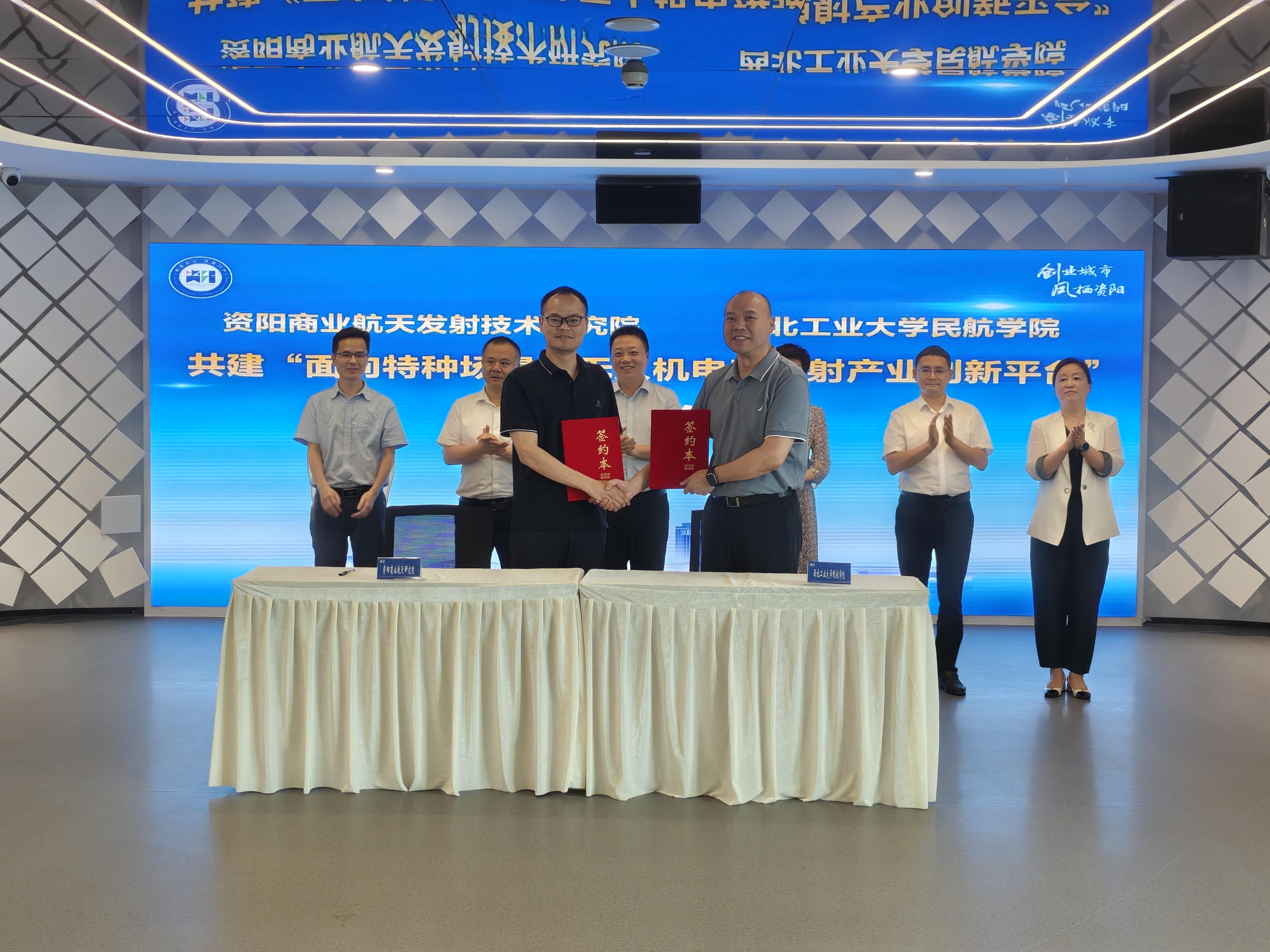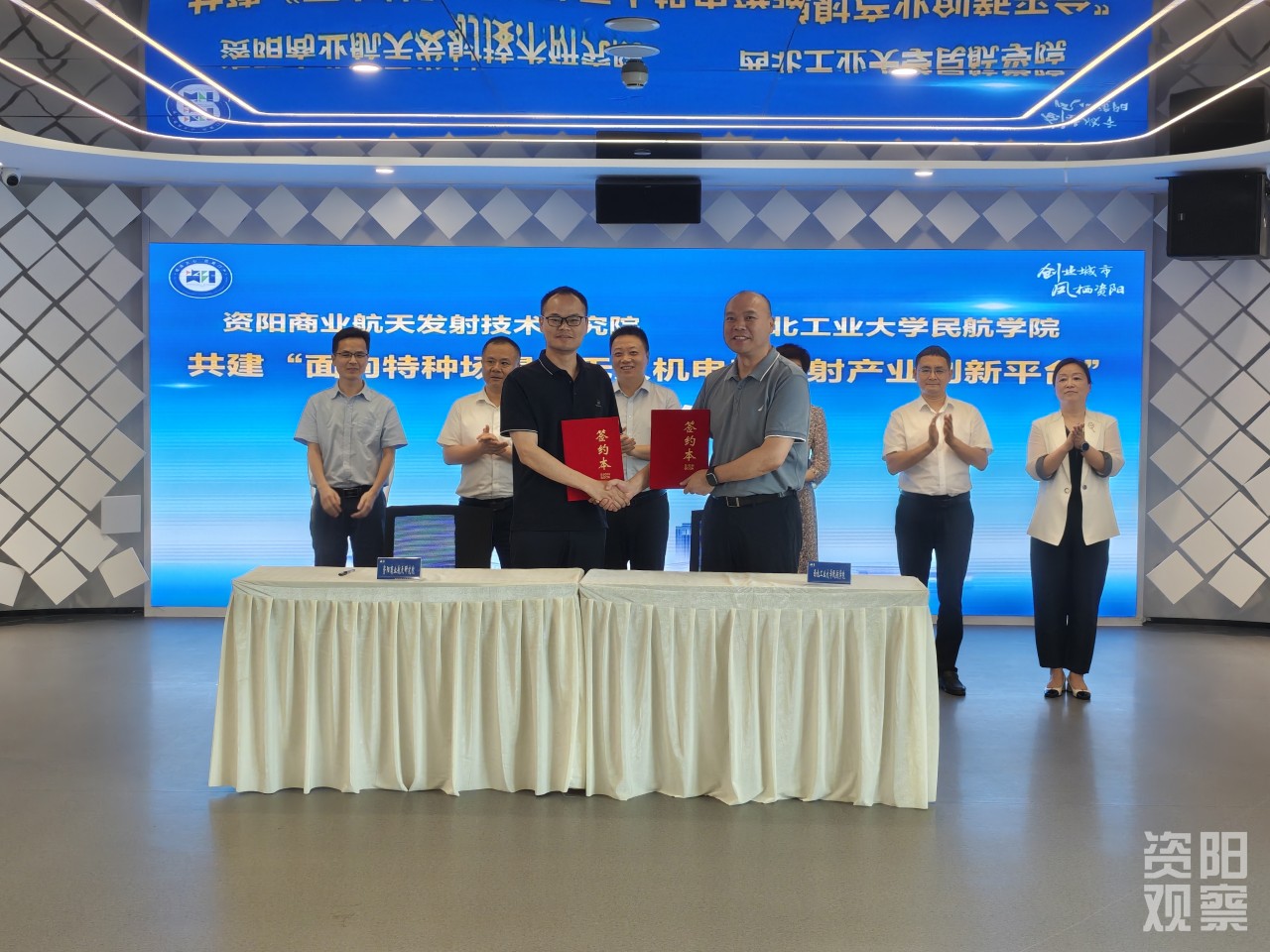 如何乘势而上、竞速争先?现场,资阳商业航天发射技术研究院与西北工业大学民航学院就共建“面向特种场景的无人机电磁弹射产业创新平台”签约。双方将在人才培养、产品研发、技术攻关等方面展开深度合作,携手推动资阳商业航天产业创新发展迈上新台阶。