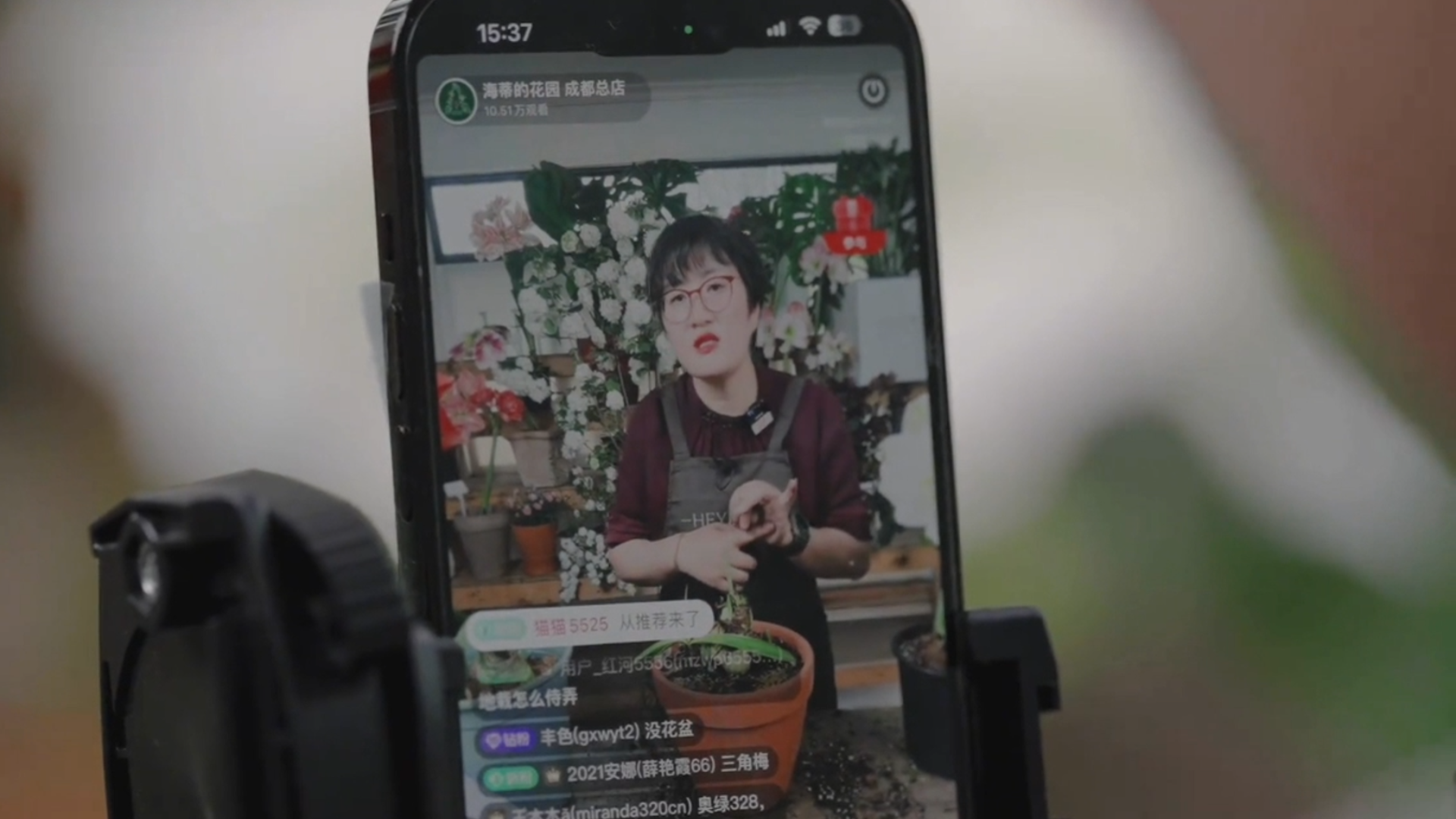 计算机专业出身的“海妈”,有着敏锐的商业嗅觉。2009年,她率先捕捉到网络直播的时代风向,成为国内最早试水电商的园艺商家之一。她一边在线上销售花卉,一边分享种花、插花知识,凭借真诚的分享和专业的讲解,收获了一批忠实粉丝,为后来园艺产业的壮大积累了良好基础。