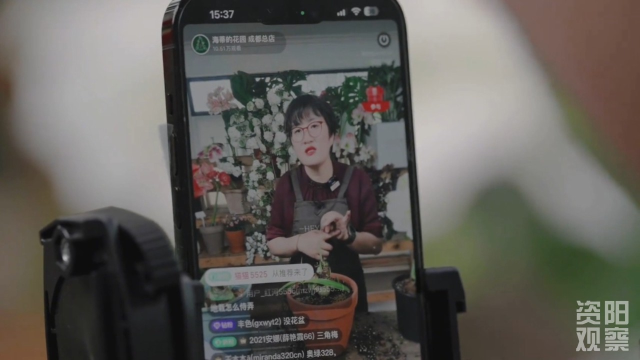 “女儿出生那年,我在三圣乡挖下了第一铲泥。”皮肤黝黑、指甲缝嵌着黑土的海妈向记者分享她的造梦故事,2010年,她租下2000平方米空地,打造了以女儿小名命名的“海蒂的花园”,正式开启她的“园艺师”之路。她的直播间里也开始挤满了喊她“海妈”的网友──这个带着泥土气的称呼,像极了资阳老家邻里间的热络问候。