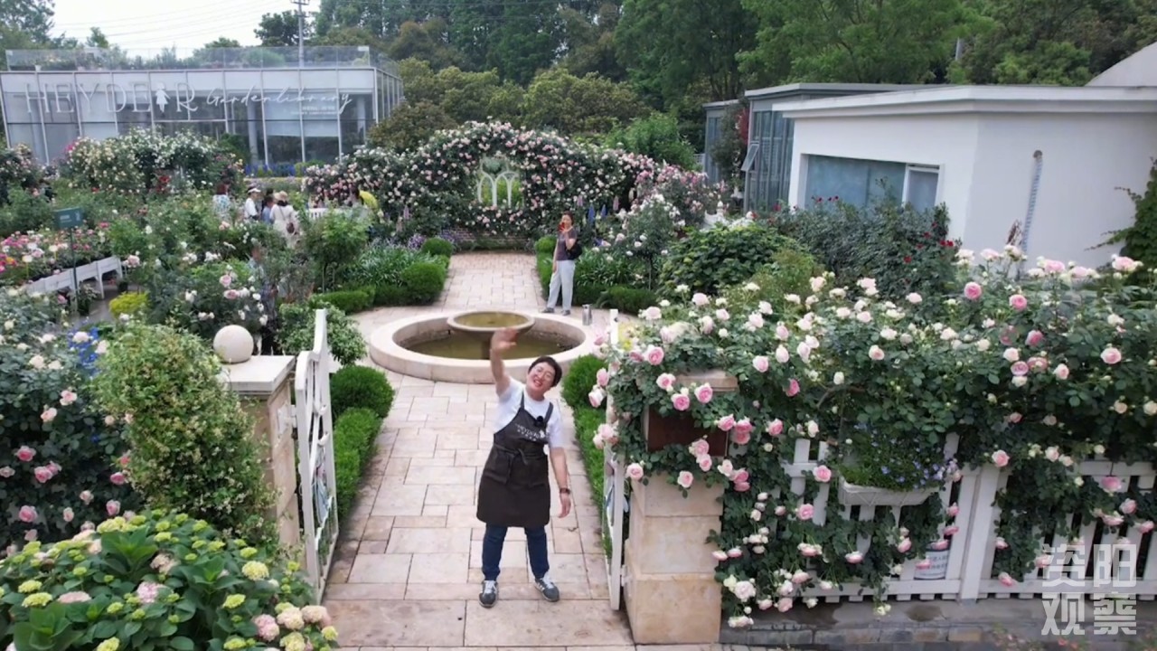 盛夏清晨,成都双流机场大厅内,一座由月季、绣球与蕨类植物编织的室内花园悄然绽放,步履匆匆的旅人经过时,总会不自觉地放缓脚步。再向西驱车十余公里,便是3300余平方米的“海蒂和噜噜的花园”,宛如现实版“爱丽丝仙境”,吸引着无数人前来打卡。这些童话王国般花园的缔造者,是拥有1200万粉丝、园艺产业年产值过亿的网络顶流──“海妈”邱亚敏,而她梦想起航的地方,是资阳市雁江区丰裕镇的田野。