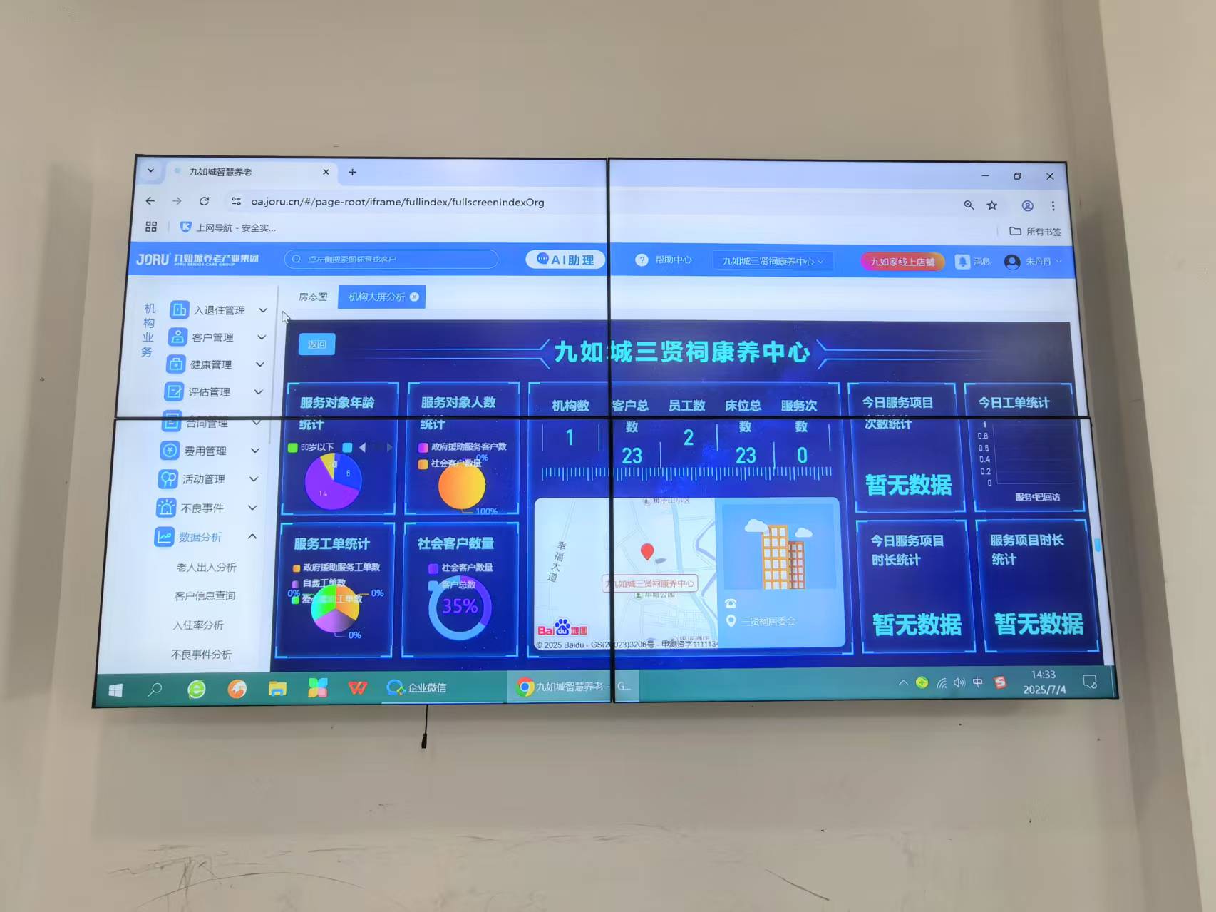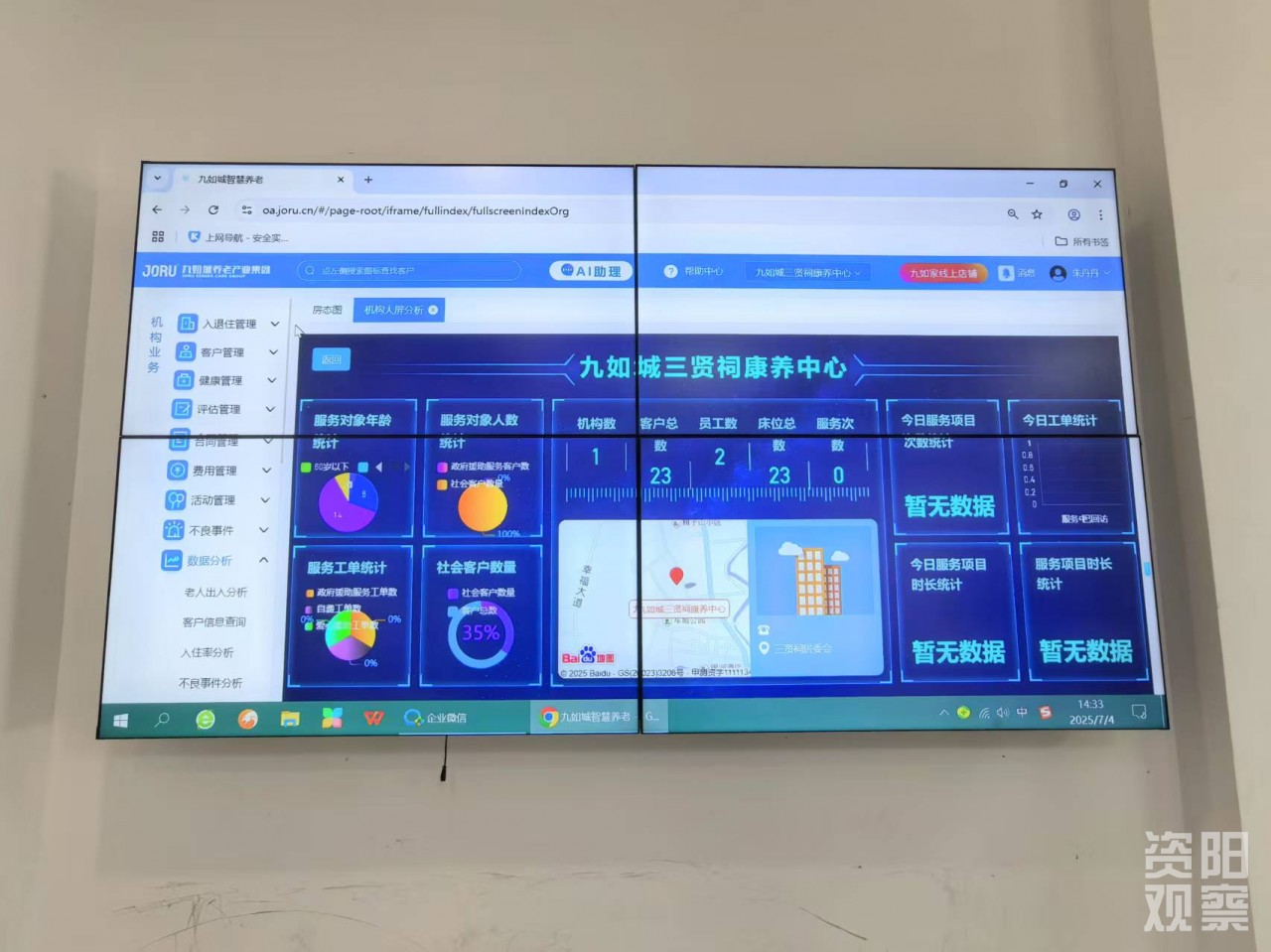 三贤祠街道综合为老服务中心智慧系统大屏。