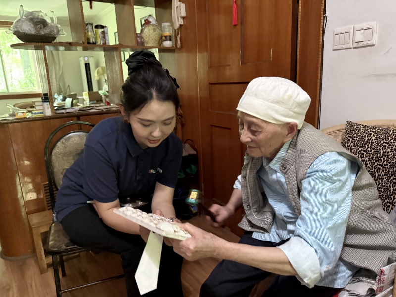 三贤祠街道综合为老服务中心工作人员上门陪伴老人。